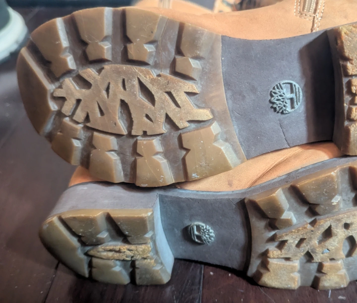 These Timberland boots are made of suede and leather with a lace-up front and side zipper closure. They are a size 8.5M. Perfect for outdoor adventures!