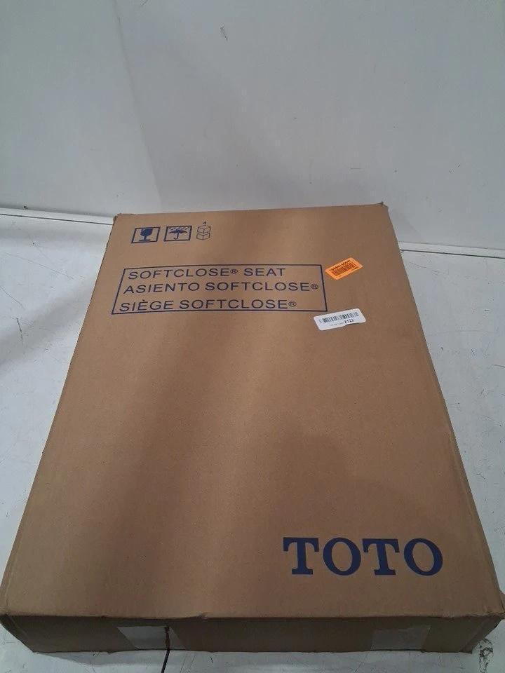 This is a TOTO SS234#01 slim, elongated, closed-front toilet seat with soft close in cotton white. This item is new in the box, and has never been used.