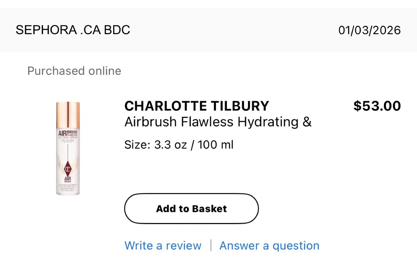 Charlotte Tilbury Airbrush Flawless Setting Spray. Hydrating and long-lasting formula. Size is 100 ml / 3.3 fl. oz. New, I’m into kbeauty, not into western right now.