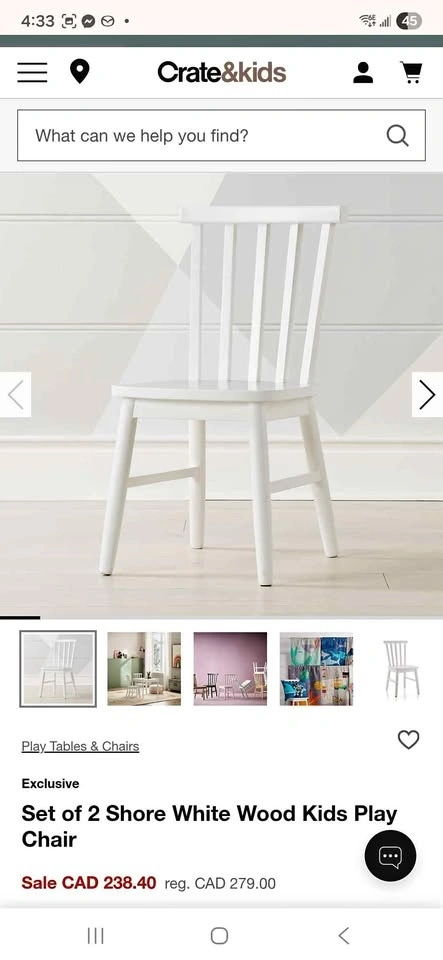 Clean set of 2 Crate&kids Shore White Wood Kids Play Chairs. Sturdy wood construction. White finish. Still in excellent condition. Retail Price is $239+tax. Selling for $150. Pick up Victoria Park & Ellesmere.