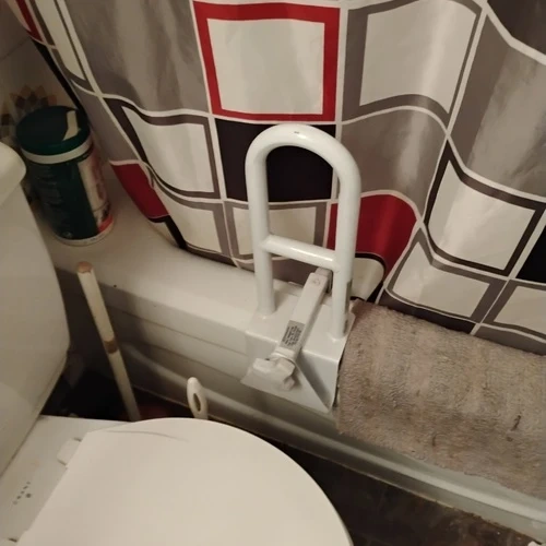 Bathtub safety grab bar provides extra stability when entering or exiting the tub. It attaches securely to the side of the tub. Made of durable material for long-lasting use.