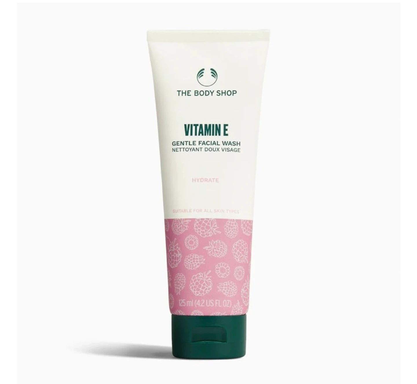 This is The Body Shop's Vitamin E Gentle Facial Wash. It's designed to hydrate and is suitable for all skin types. The bottle contains 125 ml (4.2 US FL OZ) of product.