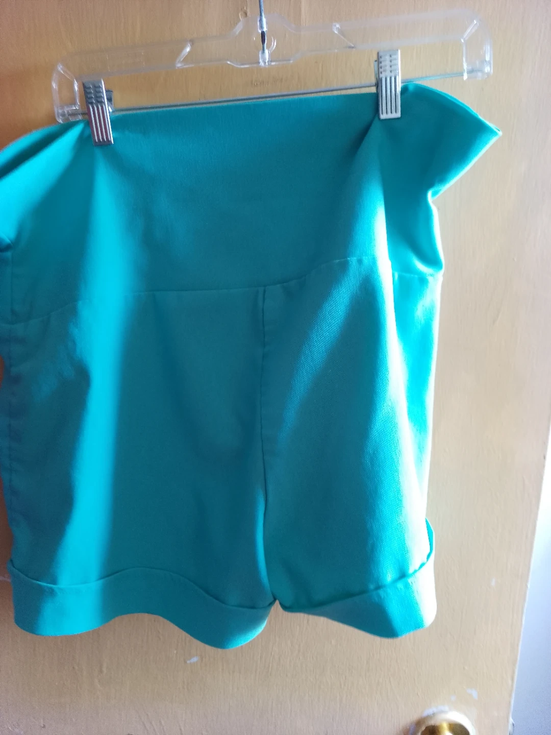 Selling a pair of Candy Couture shorts in teal! They're an XL and made of 82% polyester, 15% rayon, and 3% spandex