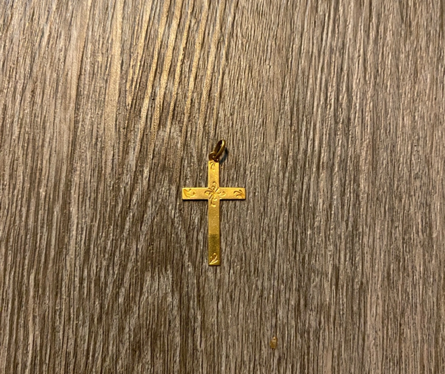 Vintage 18k yellow gold crucifix with etchings on the front, stamped, made in Italy, weight unknown.