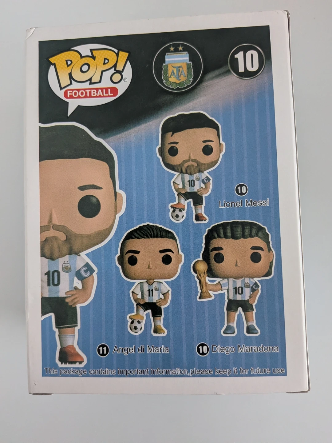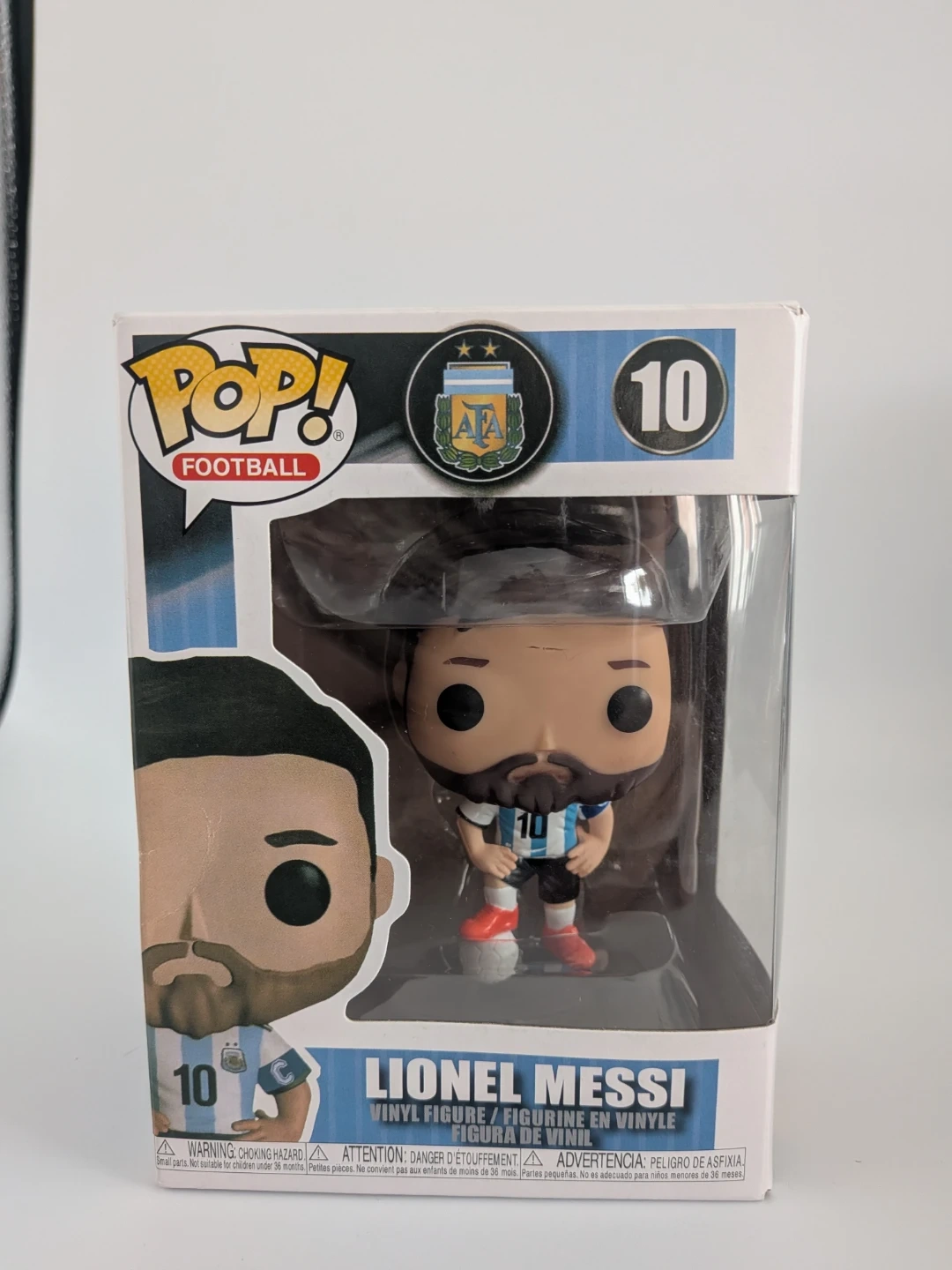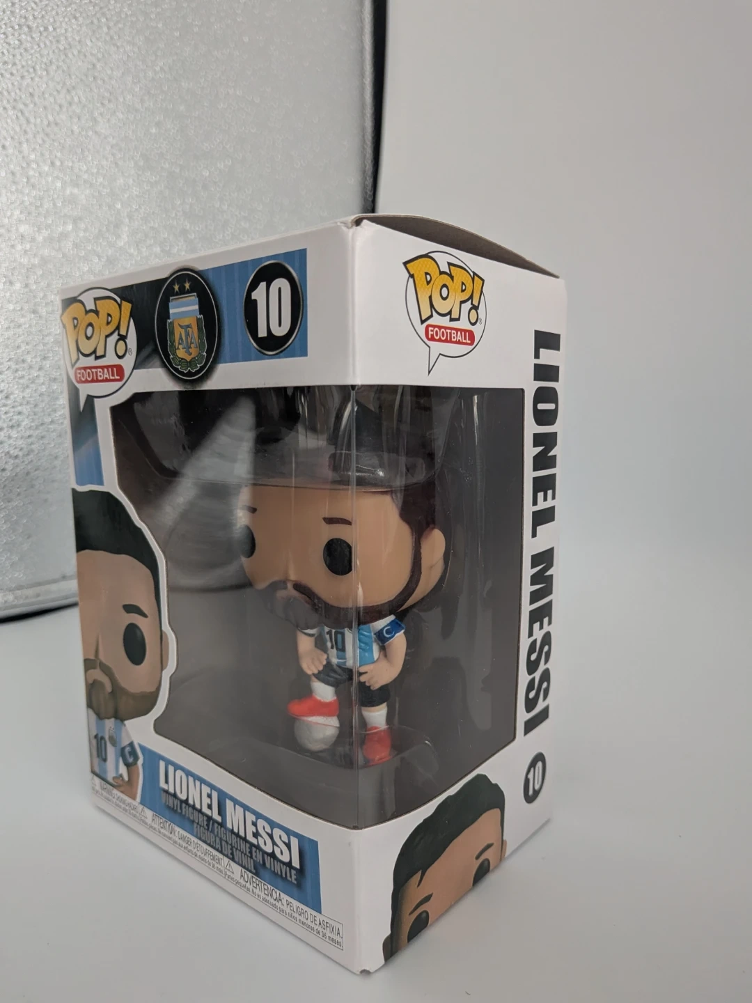 This is a Funko Pop! vinyl figure of Lionel Messi. It comes in its original packaging. This collectible is great for any soccer fan!