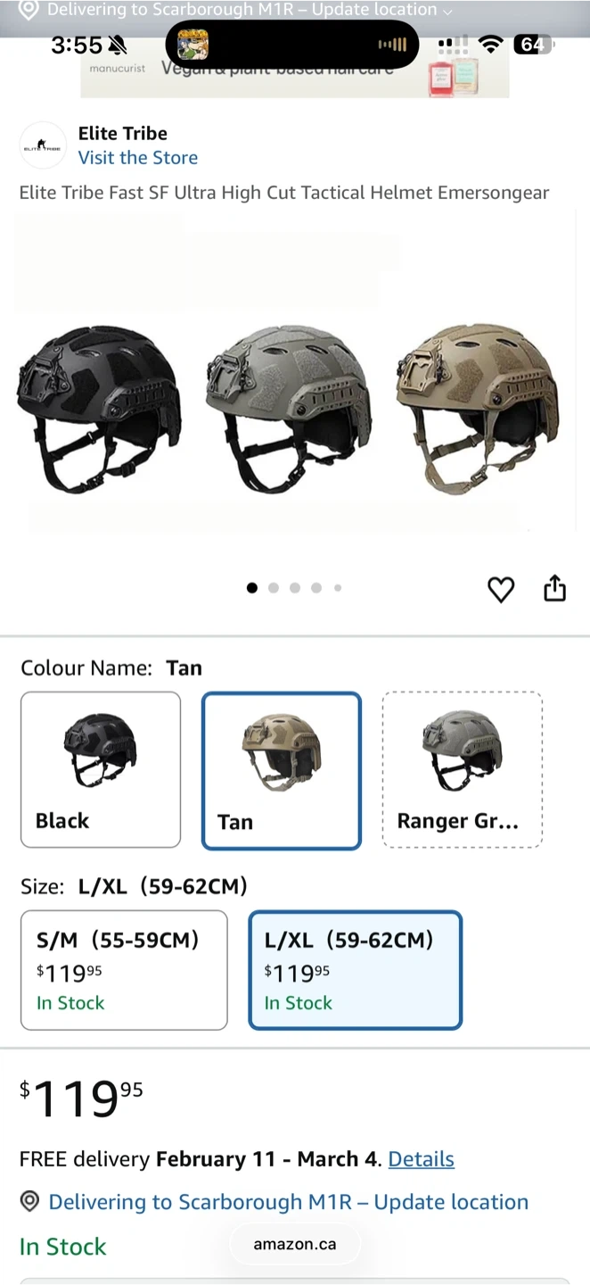 Emersongear Fast SF Ultra High Cut Tactical Helmet in tan