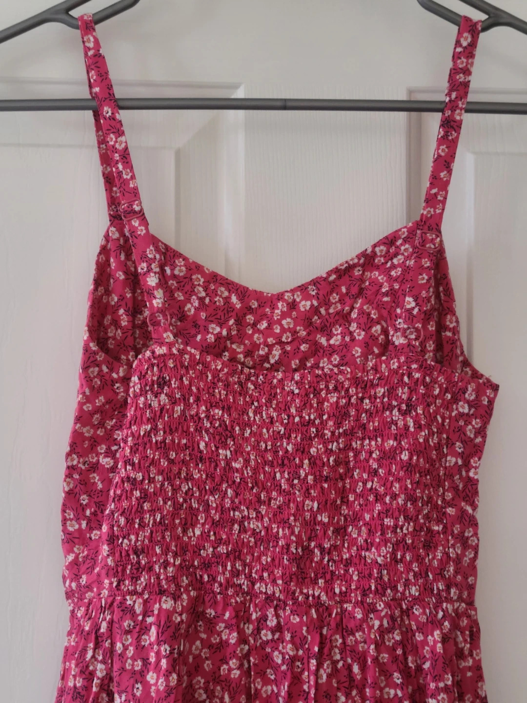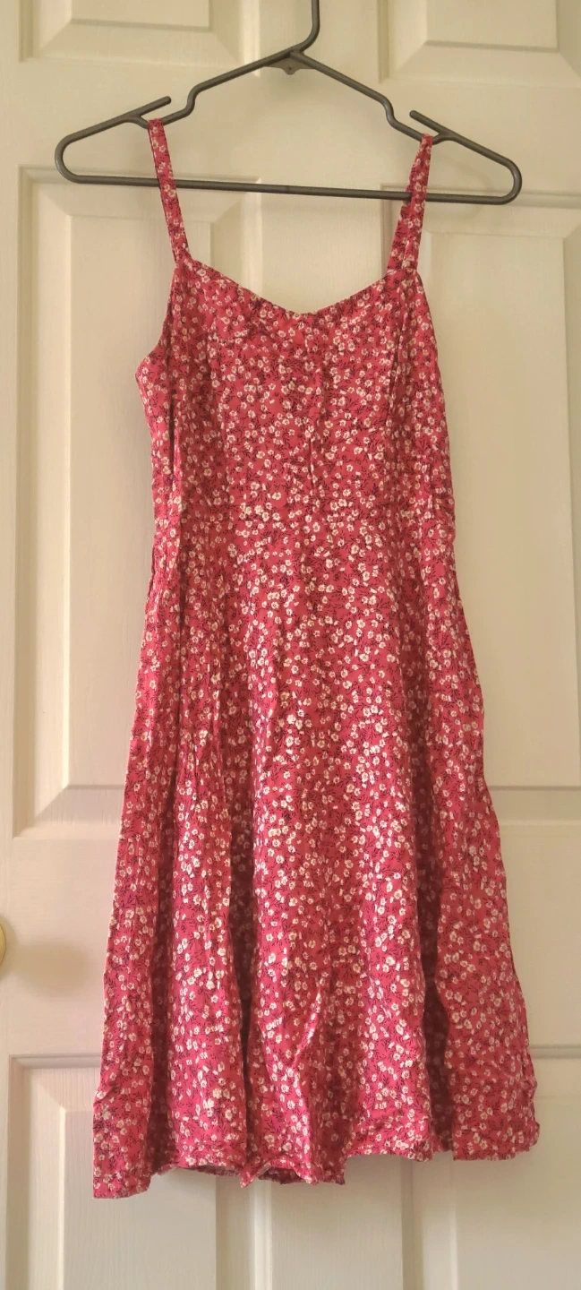 This Old Navy pink cami dress features a delightful floral pattern and a comfortable, smocked bodice, perfect for sunny days or casual outings.