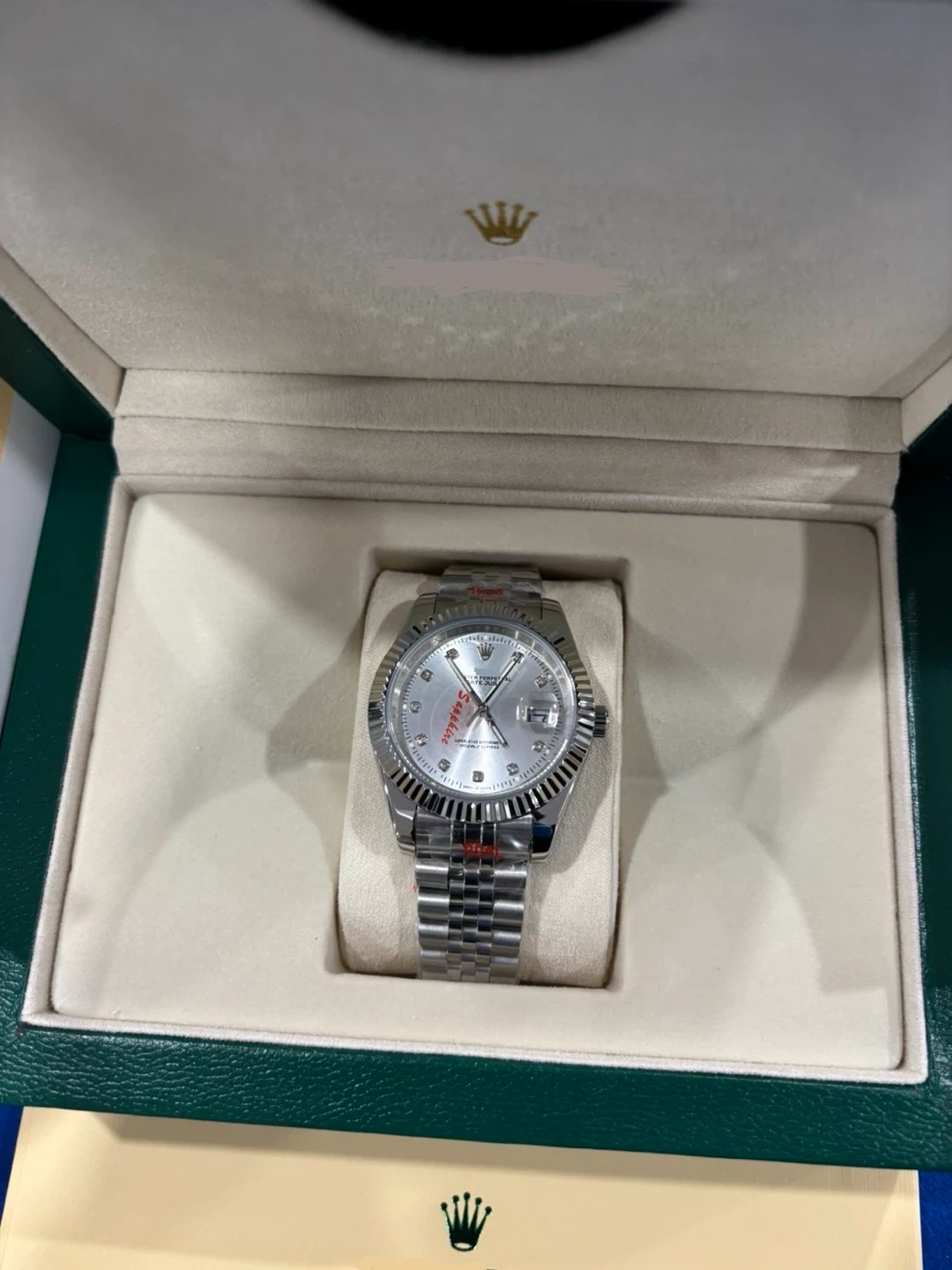 Men’s Silver Date-Just Watch with Gemstone numbers