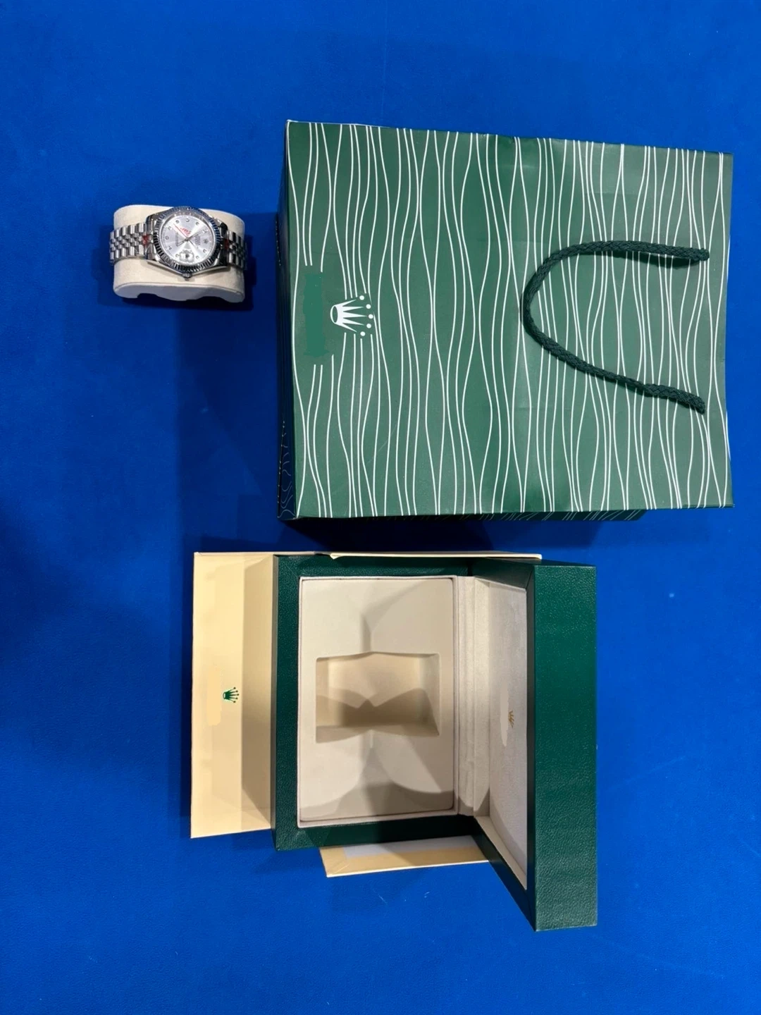 Comes with the bags, boxes, invoice from the store itself, tags, card, as well as a link remover. Wearable to any formal events, or even for everyday use as it’s not flashy, but still a flex. Message me for any questions.