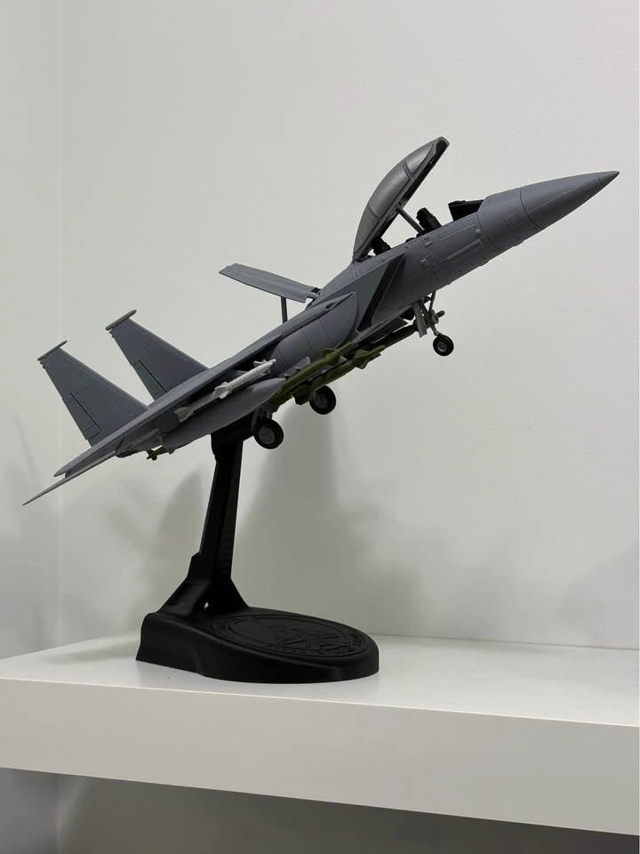 Detailed F-15E Strike Eagle aircraft model, one of the most iconic modern military jets. This piece comes fully assembled with a display stand, ready to be showcased in an office, shelf, gaming room, or aviation collection. High-quality 3D printed model. Printing time: ~70 hours. Total weight: ~280 g. Condition: Brand new. Use: Decorative / Collectible (not a toy). Dimensions: Length: 15.5 inches (39.4 cm), Wingspan: 10.5 inches (26.7 cm), Weight: ~430 g PLA, Scale: 1:40. Pickup location: 30 Shore Breeze Dr (Etobicoke). Feel free to message me if you have any questions!