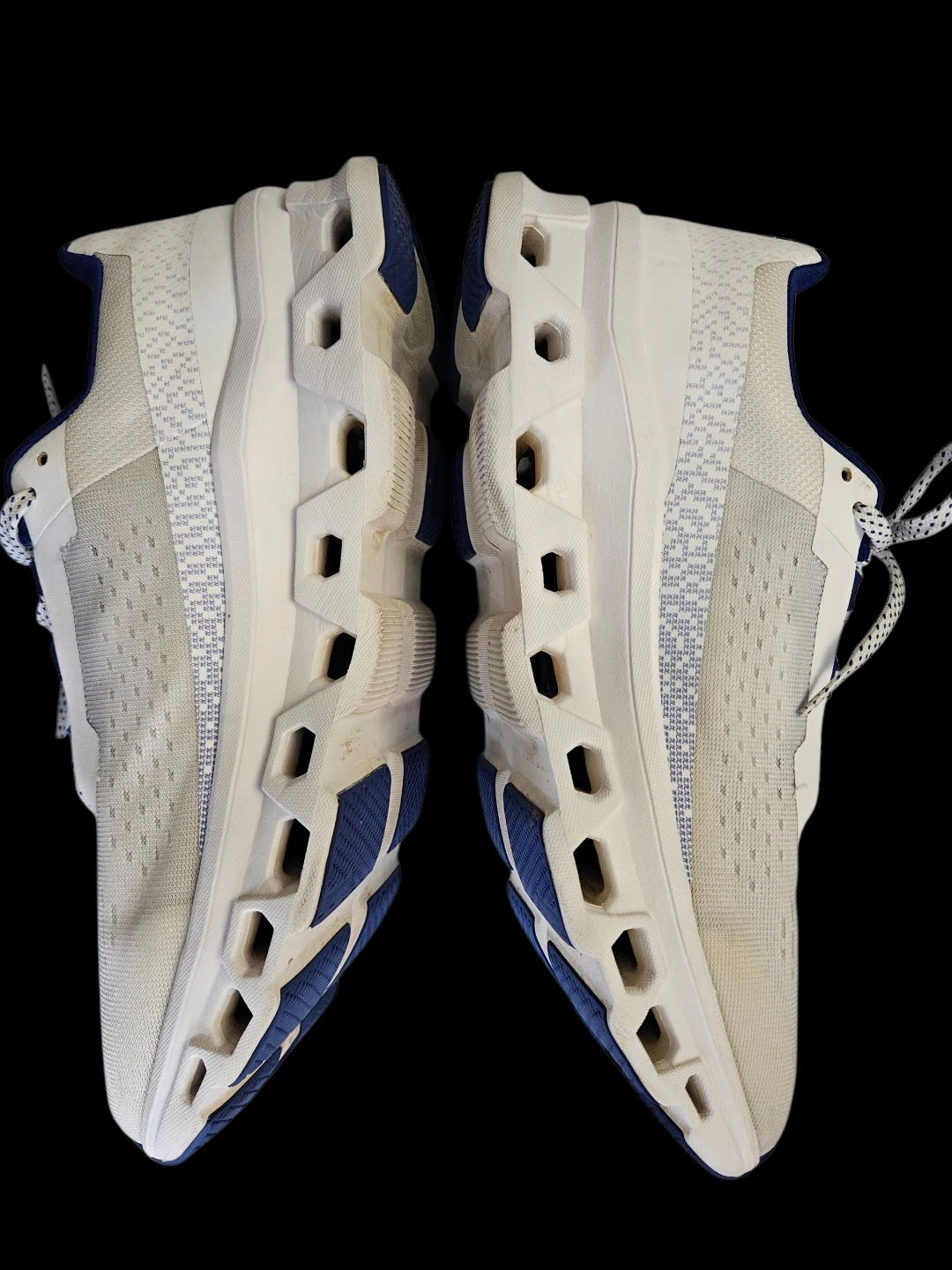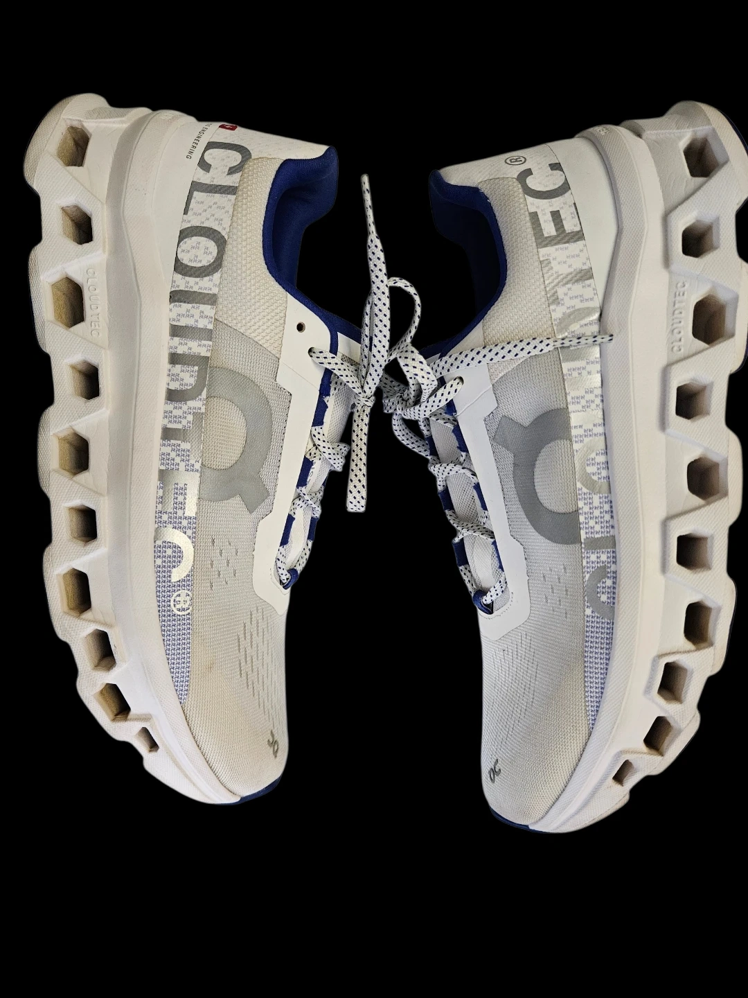 These On running shoes feature CloudTec technology for a responsive ride. They're white with blue accents and include extra insoles. Perfect for your next run!