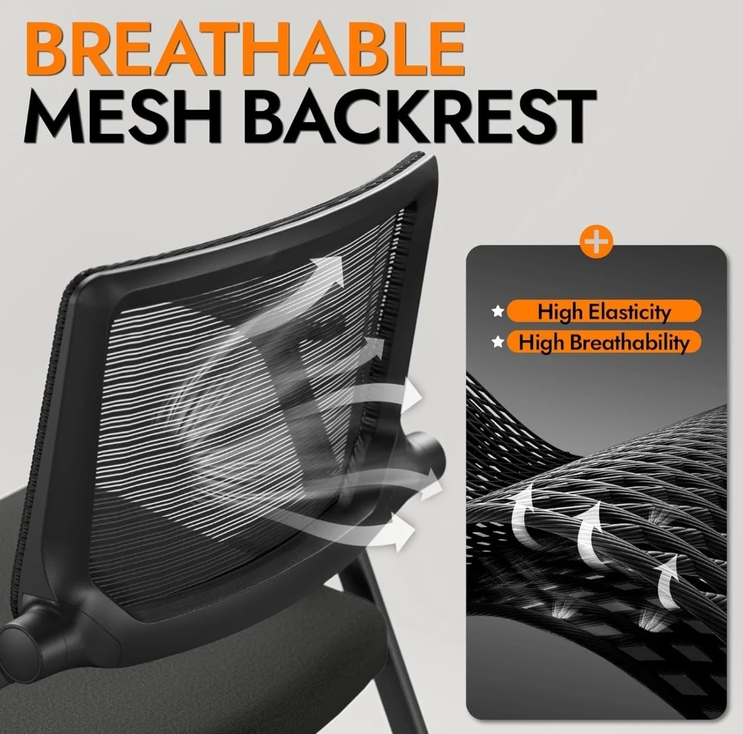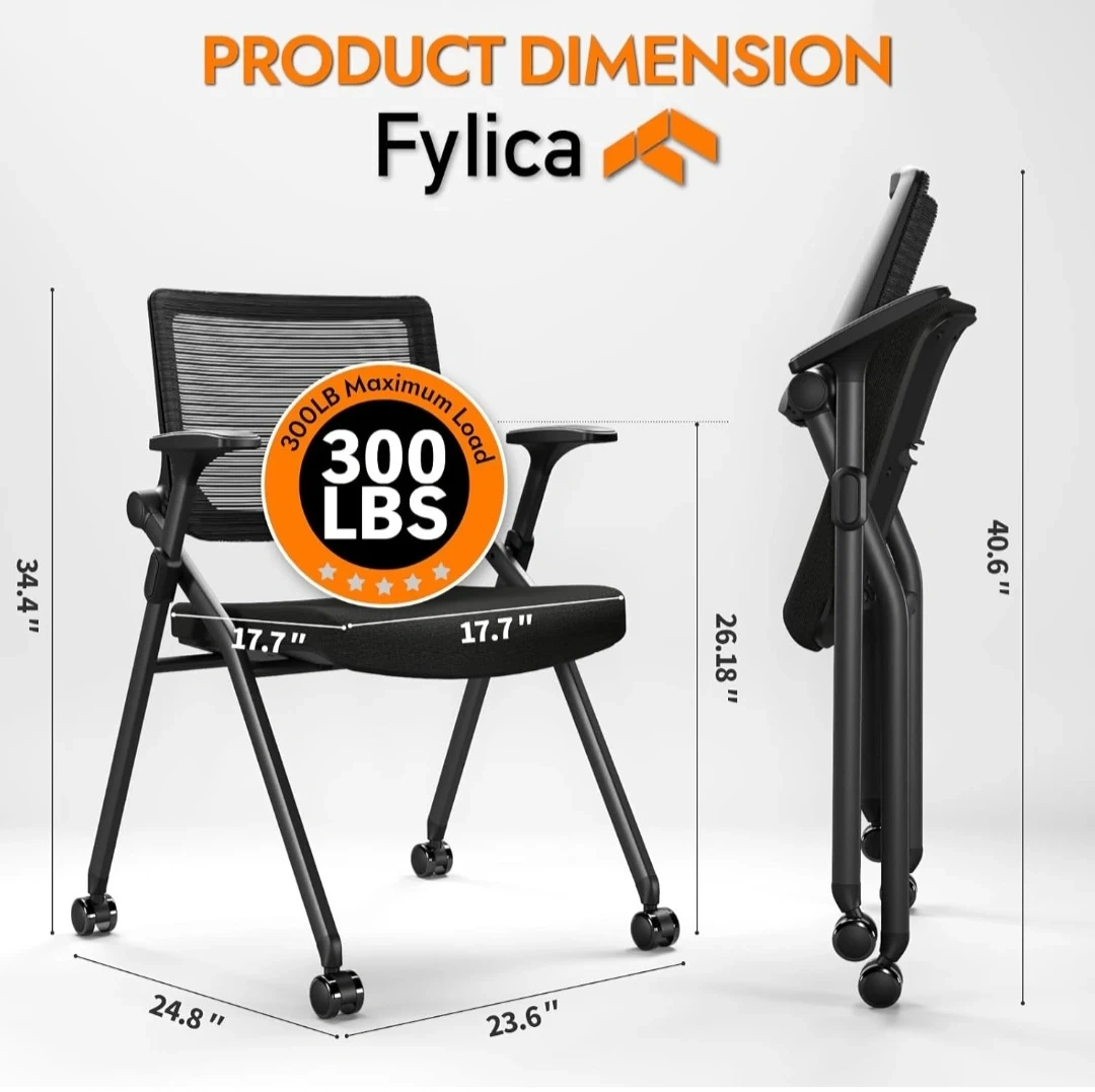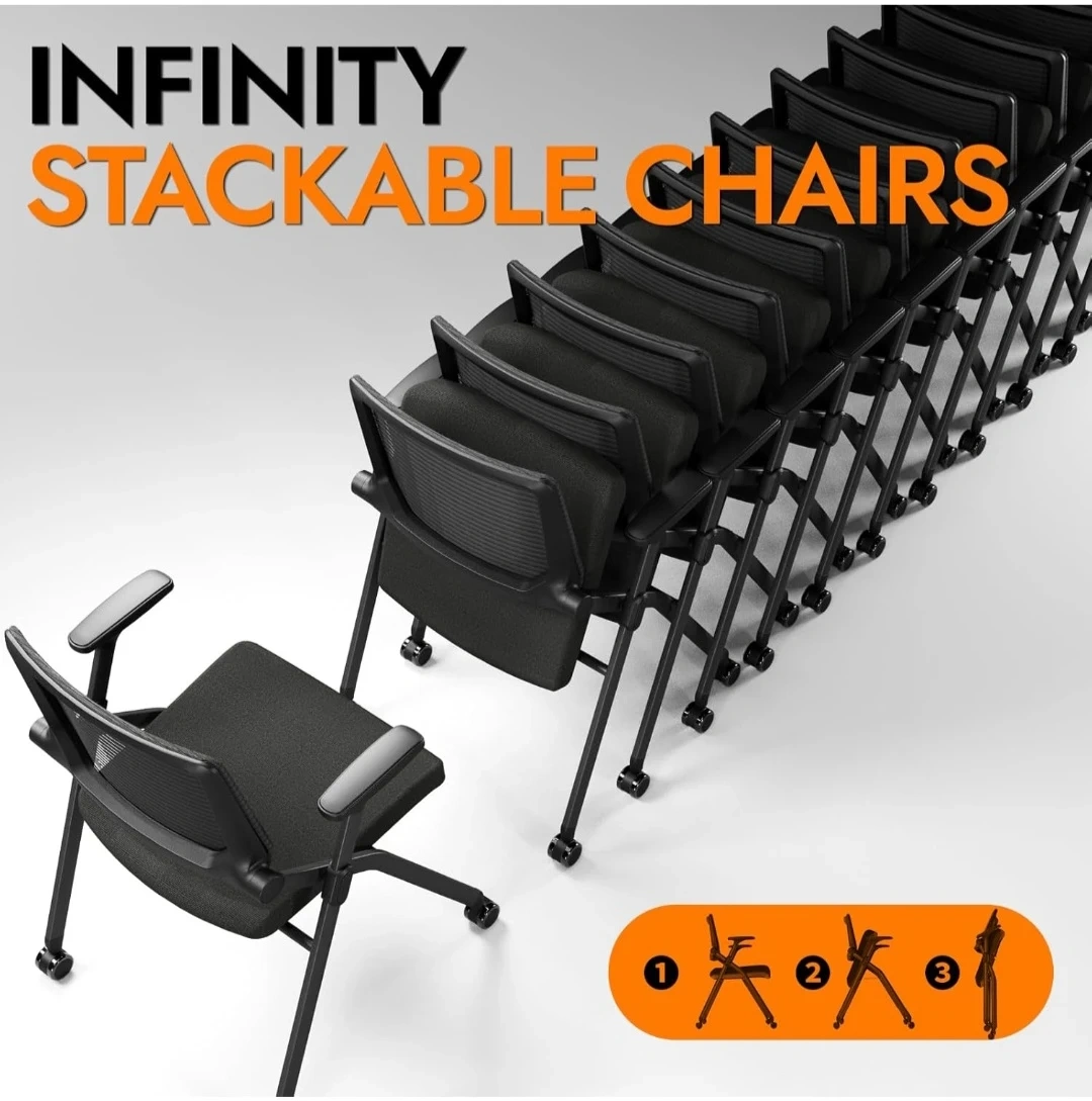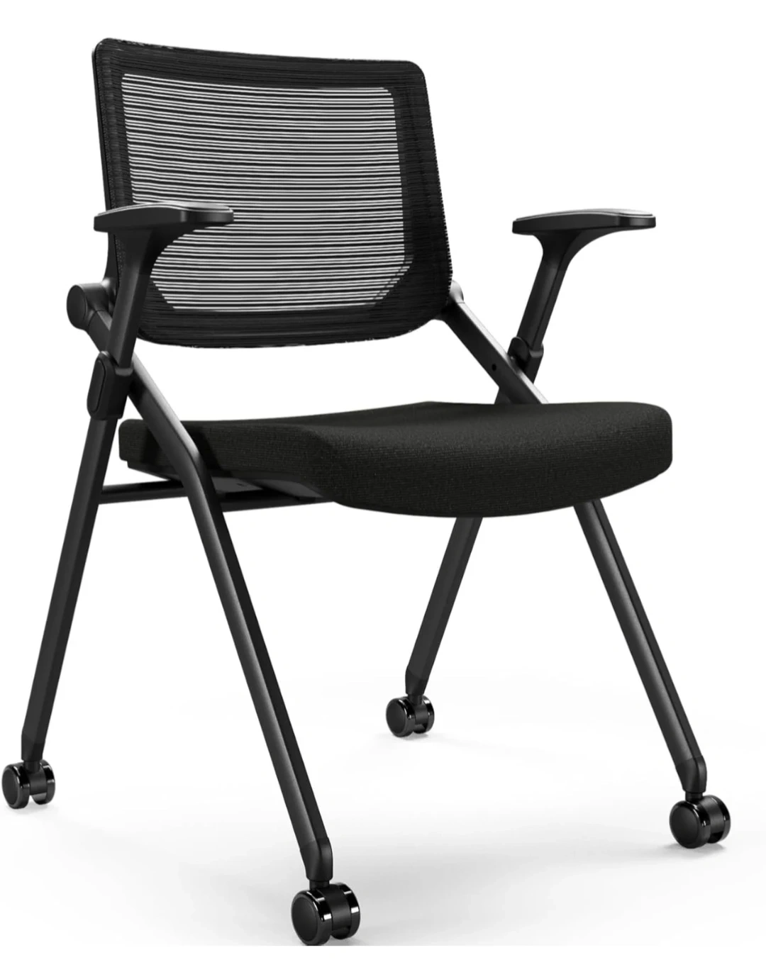 Foldable Office Chair with PU Wheels-Ergonomic Mesh Bouncing Back, Stackable Conference Room Chair, Office Guest & Reception & Meeting Chair