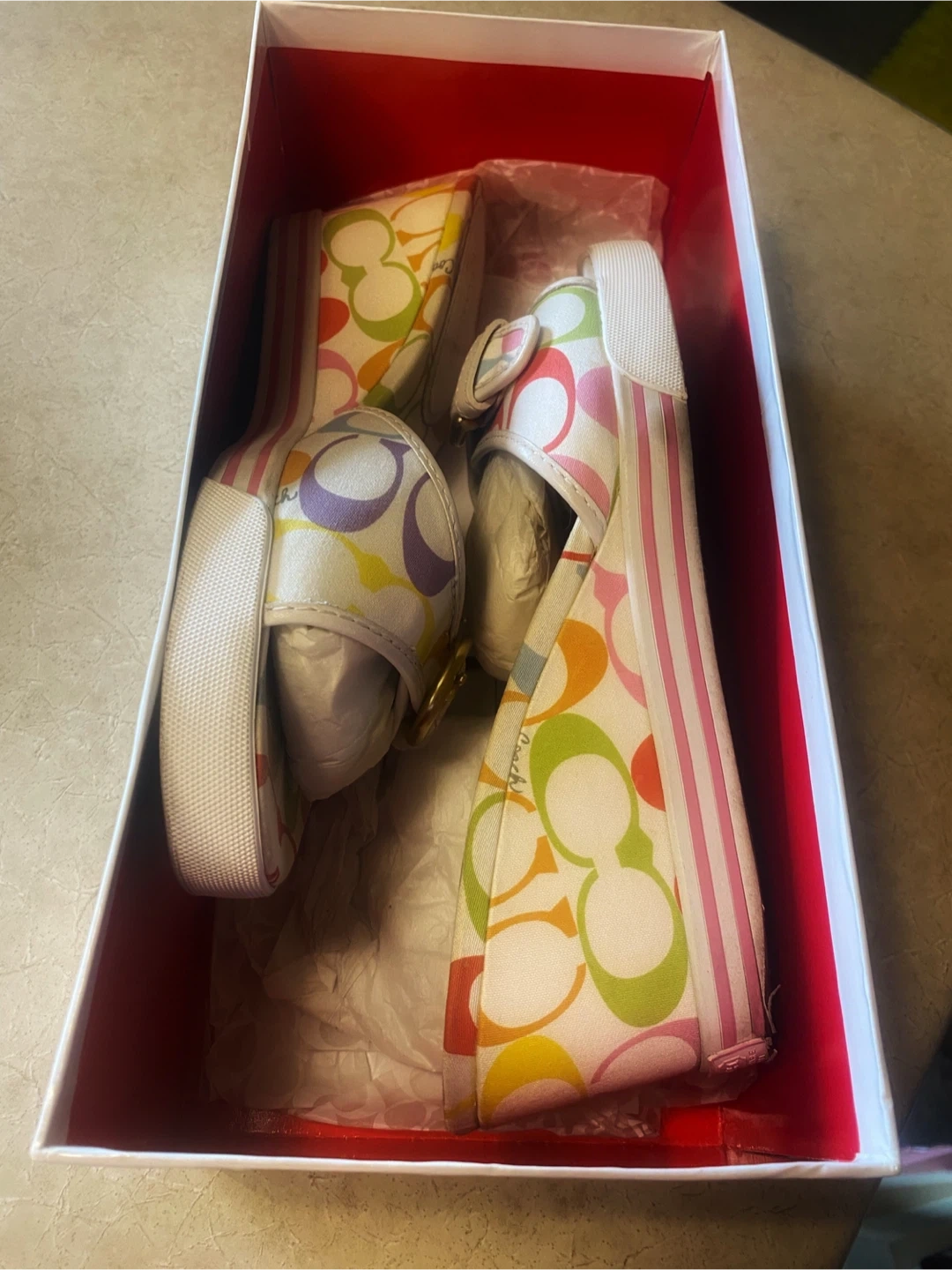 👡Coach Perry slide sandals in size 8. These feature the classic multicolor C logo pattern. They come with their original box, which is great for keeping them protected!👡