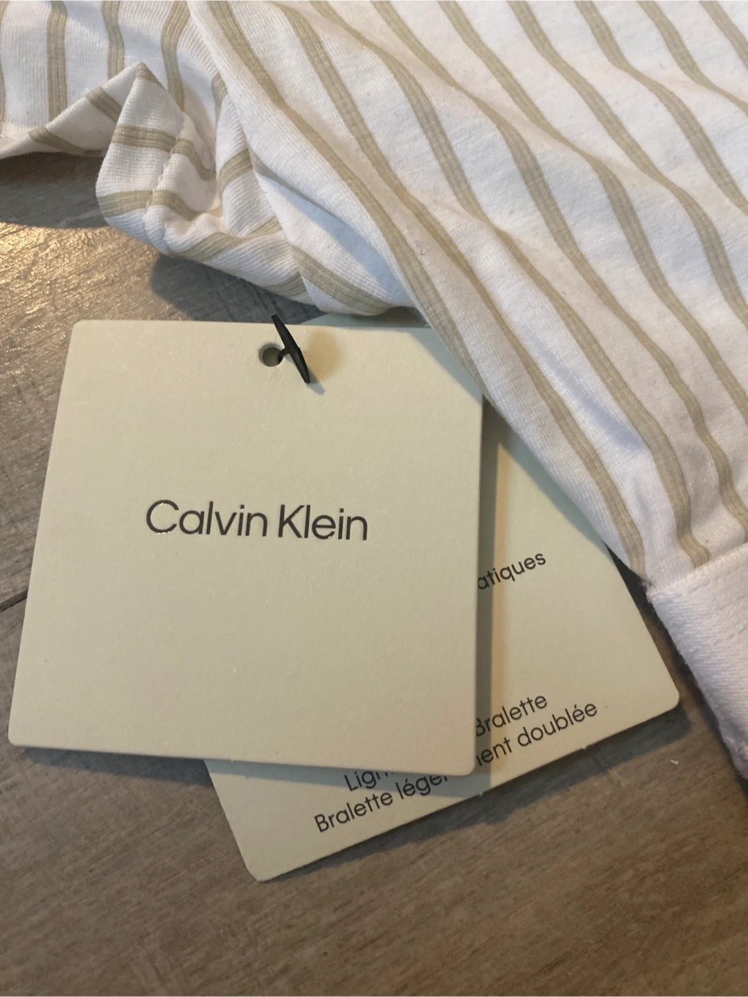 Selling a brand new Calvin Klein striped bralette! It's in excellent condition with tags still attached. Perfect for everyday wear! Original price is 51 CAD