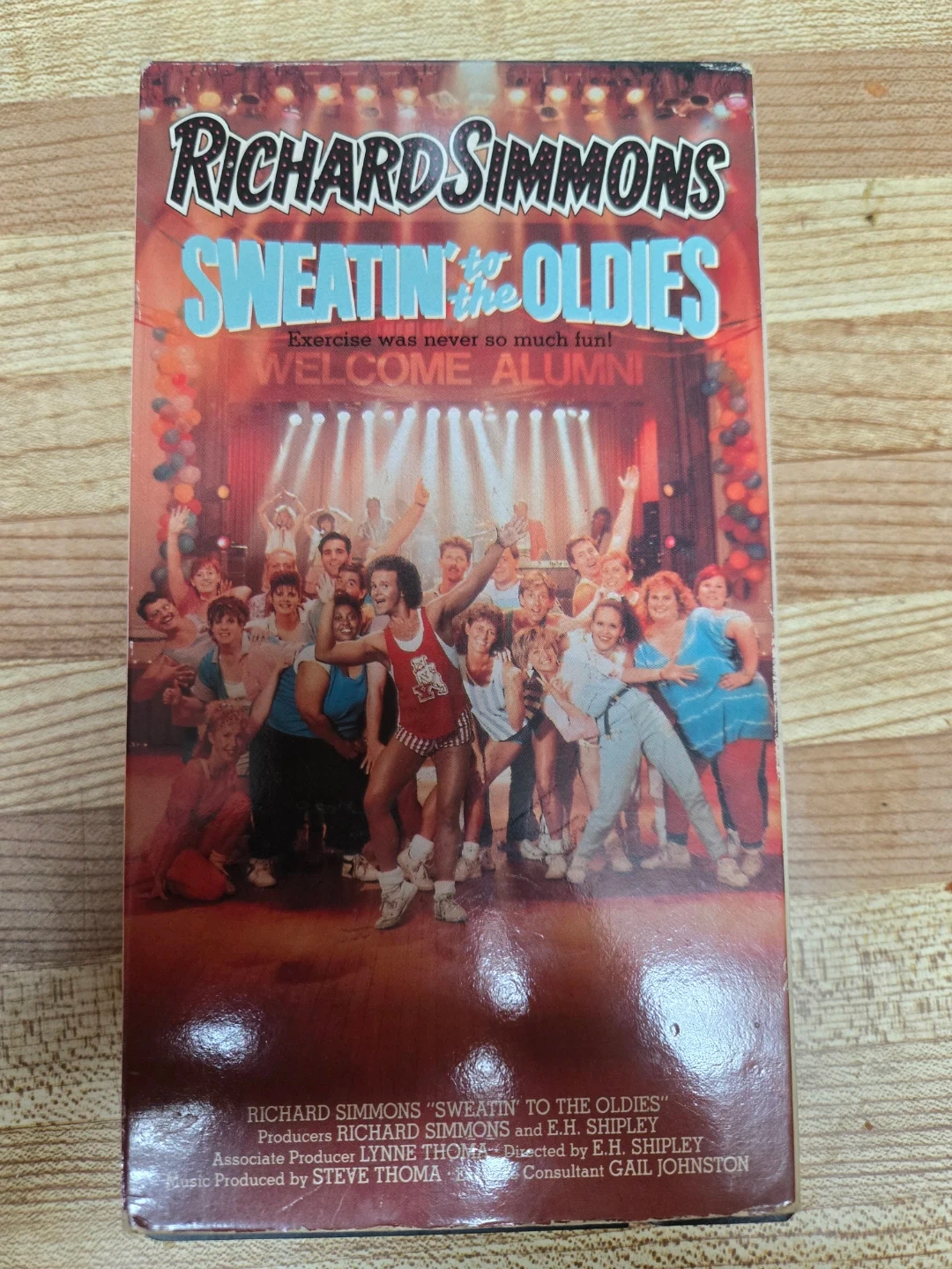 Sweatin' To The Oldies VHS tape from Richard Simmons. This video features a fun workout with music from the 50s and 60s. It's designed to get you dancing in the streets. Perfect for anyone looking to add more fun to their exercise routine!