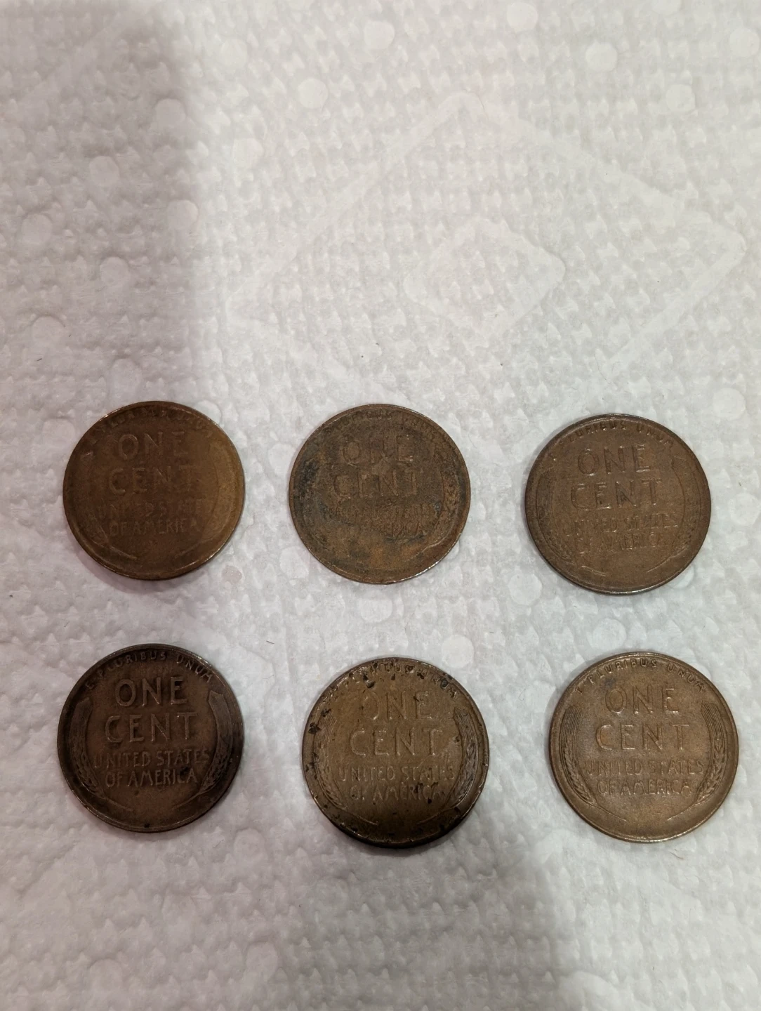 Lincoln Wheat Pennies - 6 Coins Bronze composition