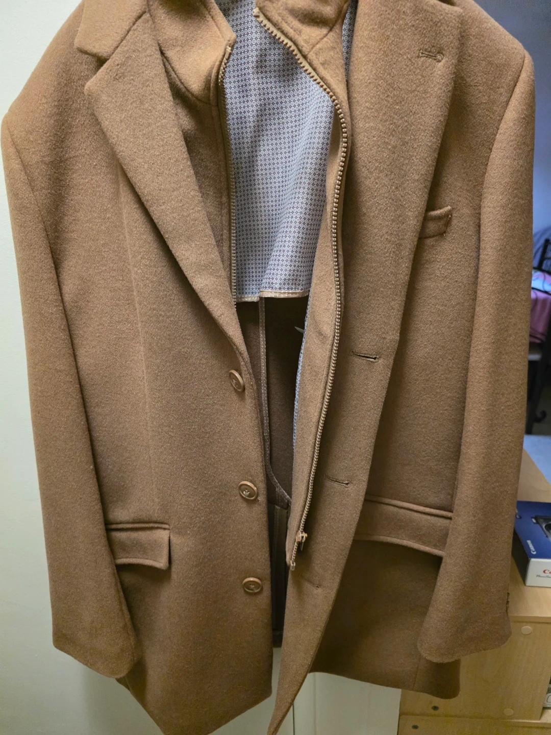 Men's Brown Wool Blend Blazer with Zip-out Liner