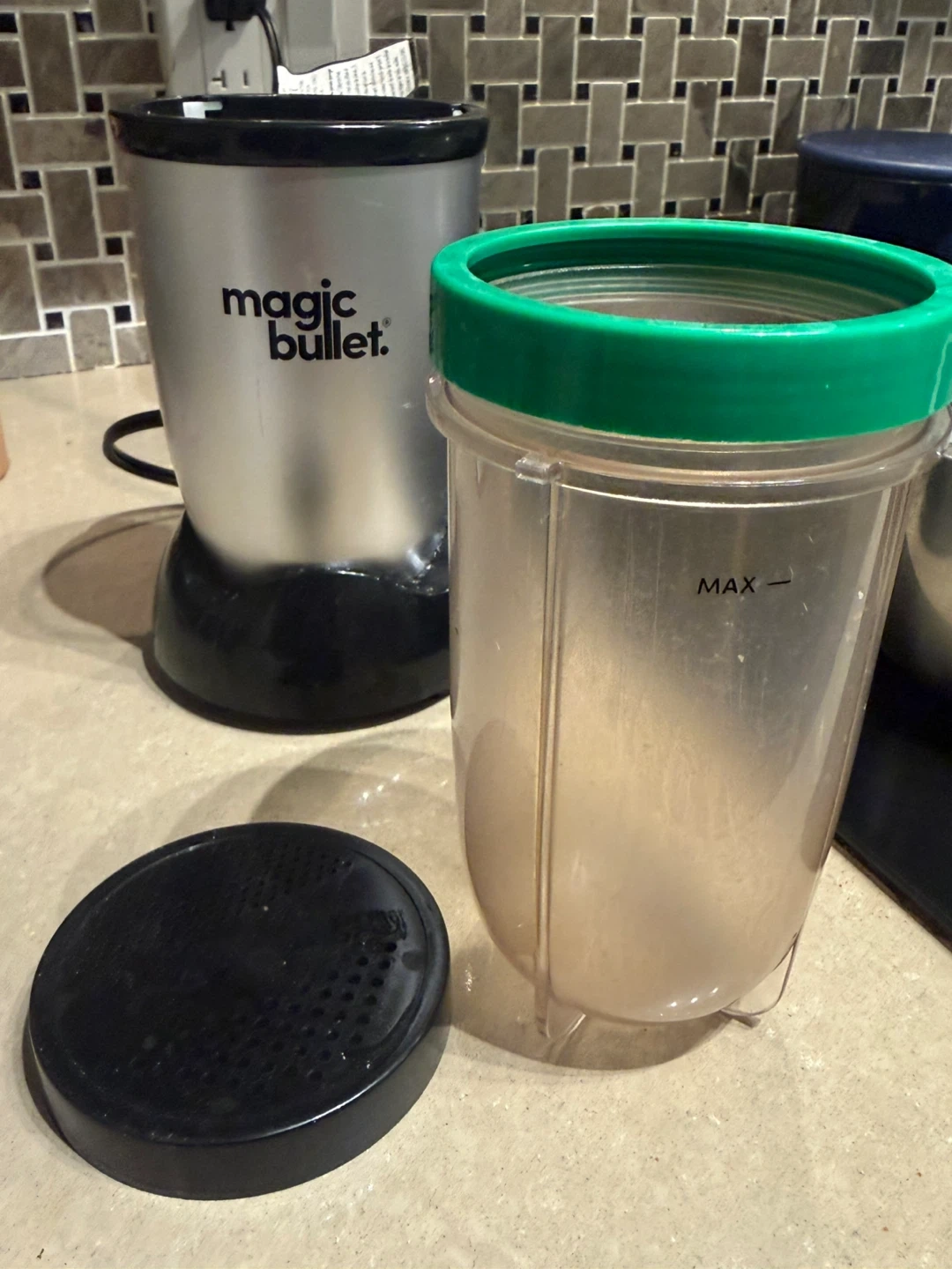 Selling a Magic Bullet blender. It's used but in good condition, has two big jars, one small one. Comes up with all the additional lids. Damage free, lids are even new, as I never used it.