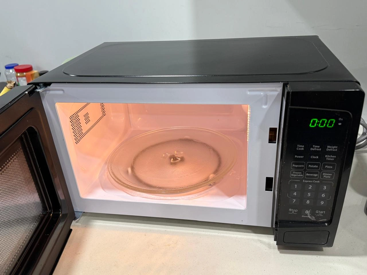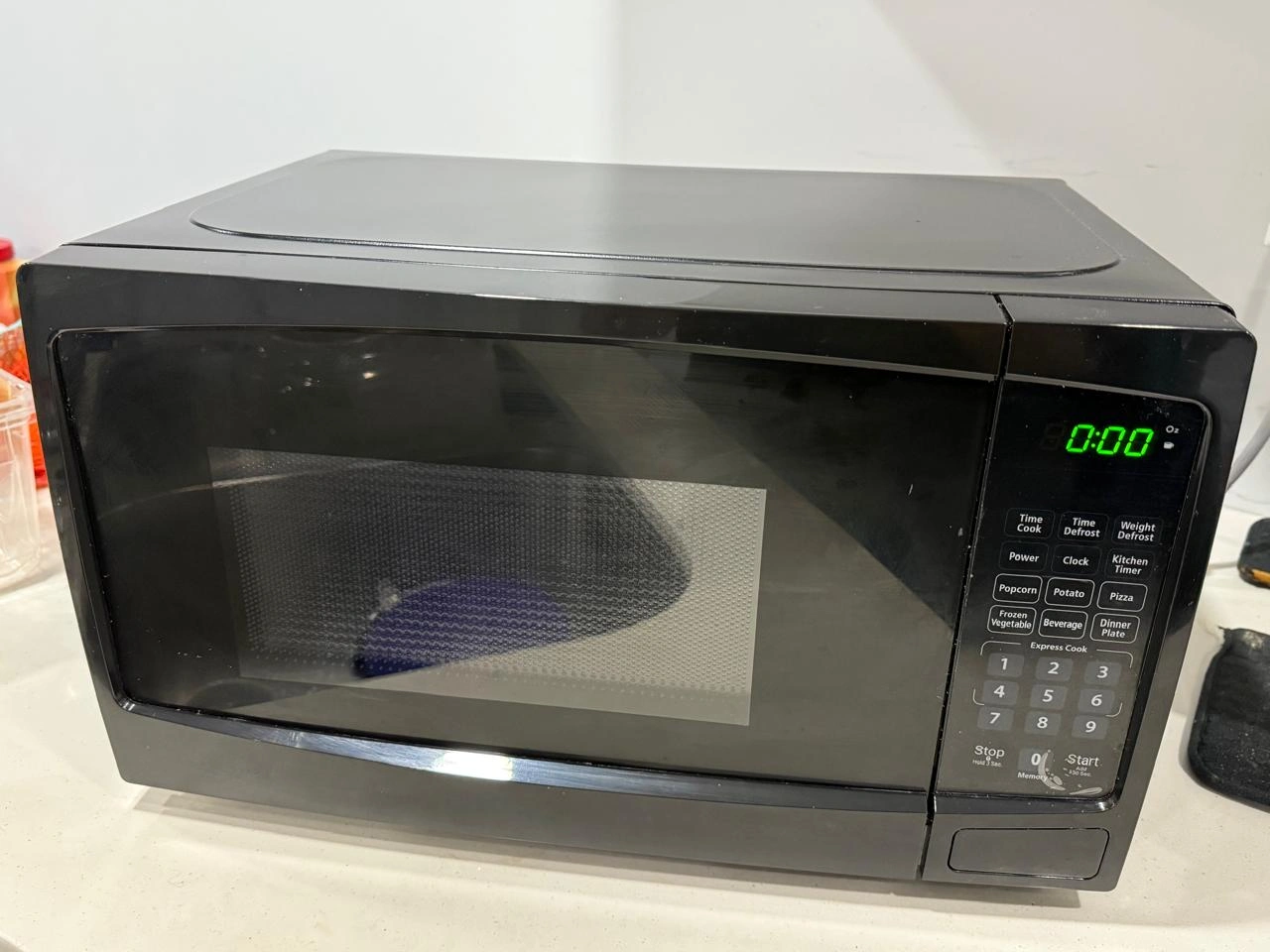 6 convenient auto cook options: popcorn, potato, pizza, frozen vegetables, beverage, dinner plate