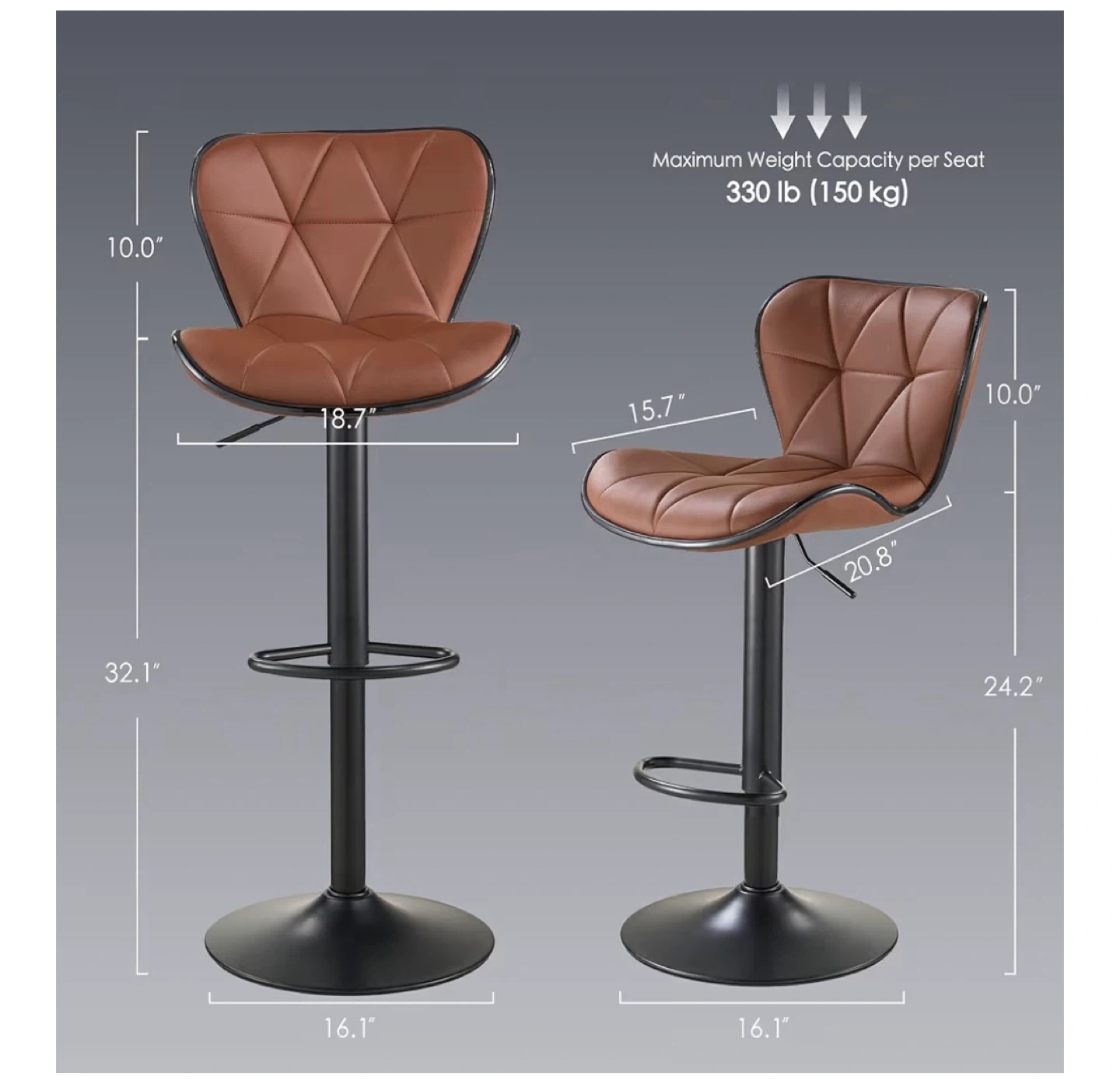 Adjustable Swivel Bar Stool - Brown Faux Leather