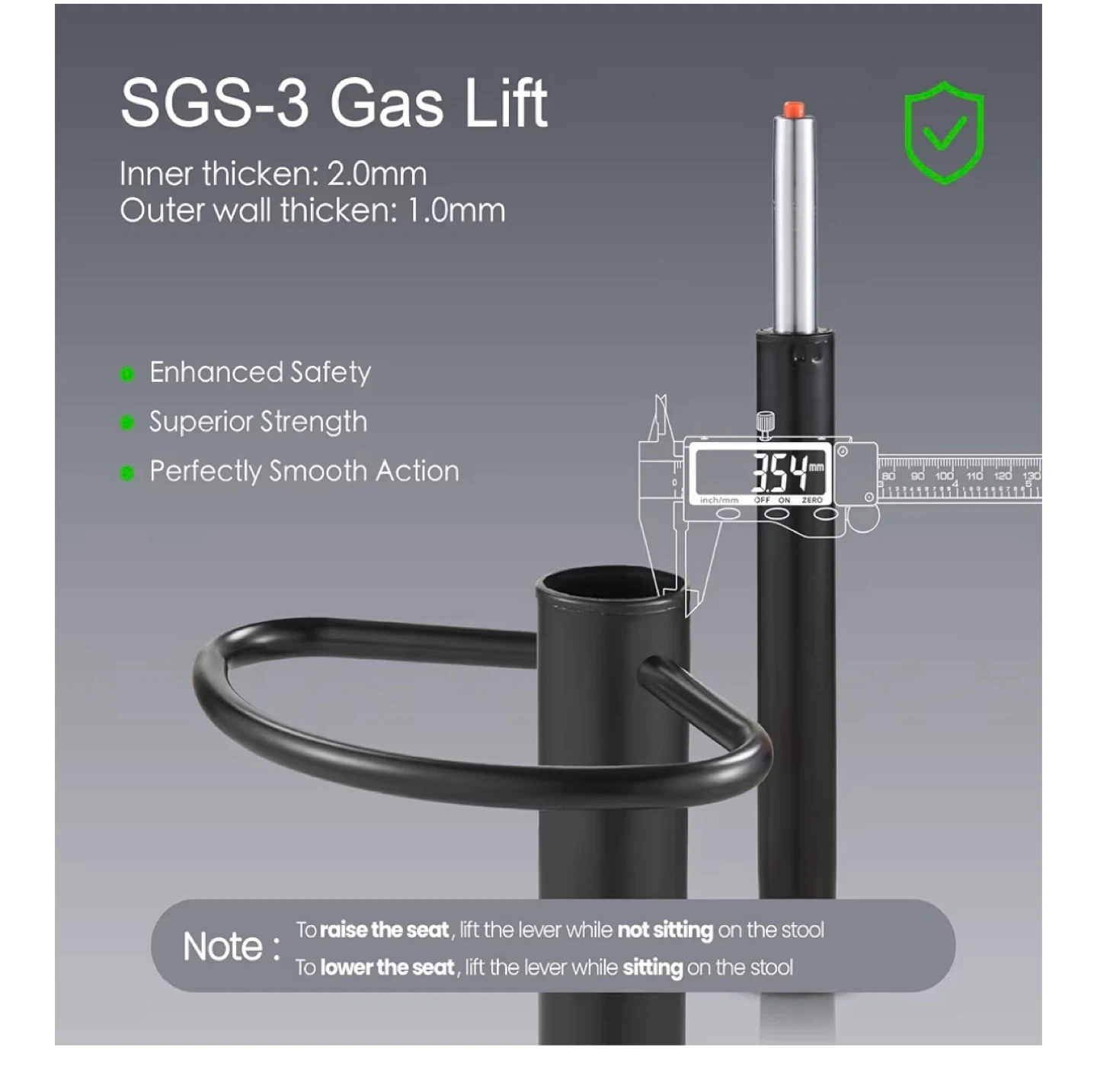 This adjustable bar stool features comfortable cushioning and a durable SGS-3 gas lift. It's made with wear-resistant and stain-resistant waterproof leather and high-density foam. The stool's height can be adjusted for various counter or bar heights.