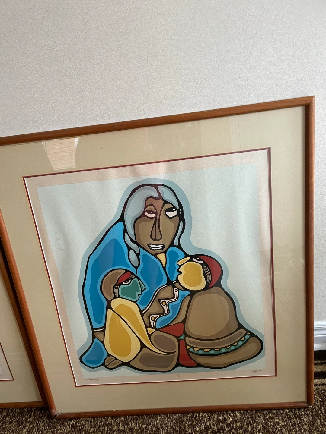 Framed limited edition lithograph by Daphne Odjig, titled "Homage to Grandfather." This print is number 78 of an edition of 99, with 10 artist's proofs. It's a beautiful piece of Indigenous art.