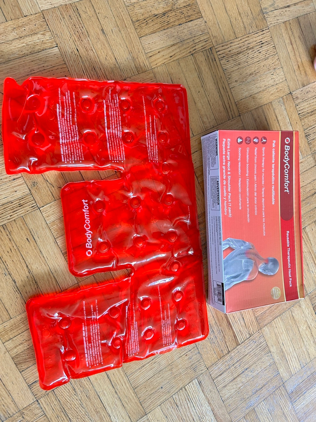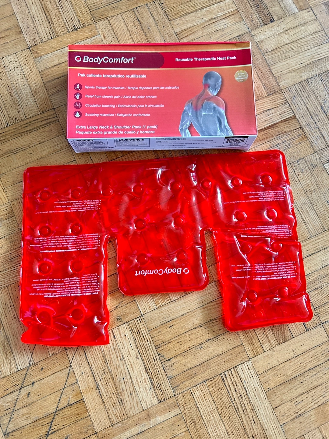 This is a BodyComfort reusable therapeutic heat pack, designed for extra large neck and shoulder coverage. It provides relief from chronic pain and boosts circulation, offering soothing relaxation. Comes with the original box.