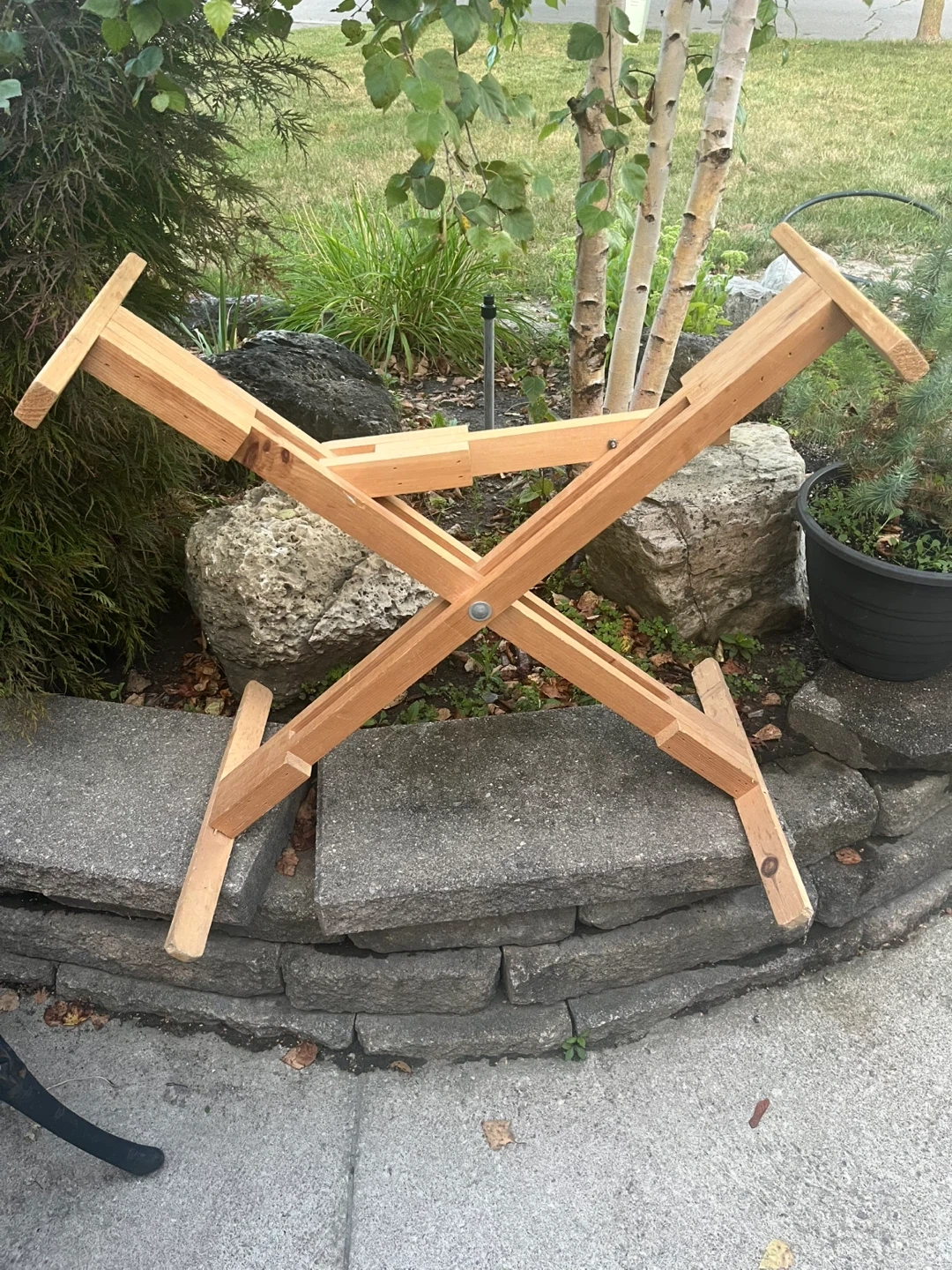 Portable wooden keyboard easel, folds flat for easy storage. It's made of natural wood and features an adjustable height mechanism. It's useful for keyboards who need a stable surface.