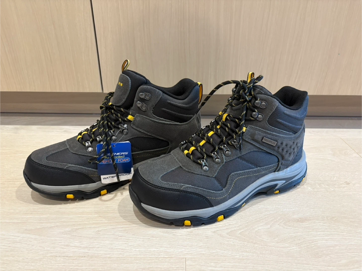 Selling a pair of Skechers waterproof hiking boots in excellent condition! These boots feature a comfortable memory foam insole, perfect for long hikes or everyday wear. They are waterproof, so you don't have to worry about getting your feet wet. The size is US 10.