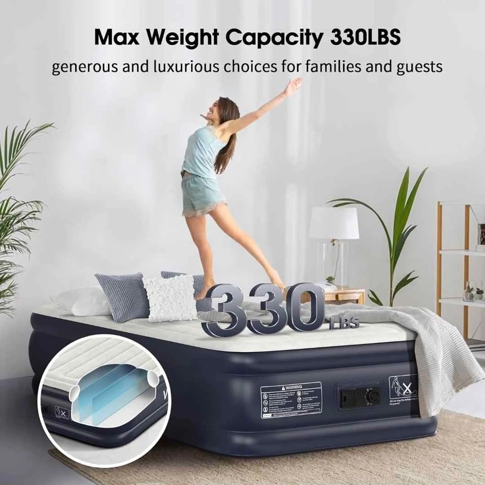 The air mattress stands out for its advanced vertical support technology with the aim of providing not only superior ergonomic support, but also a comfort hug. This innovative design ensures that the twin air mattress can support up to 330 lbs. Vertical beams distribute weight evenly, reducing pressure points and ensuring restful sleep.