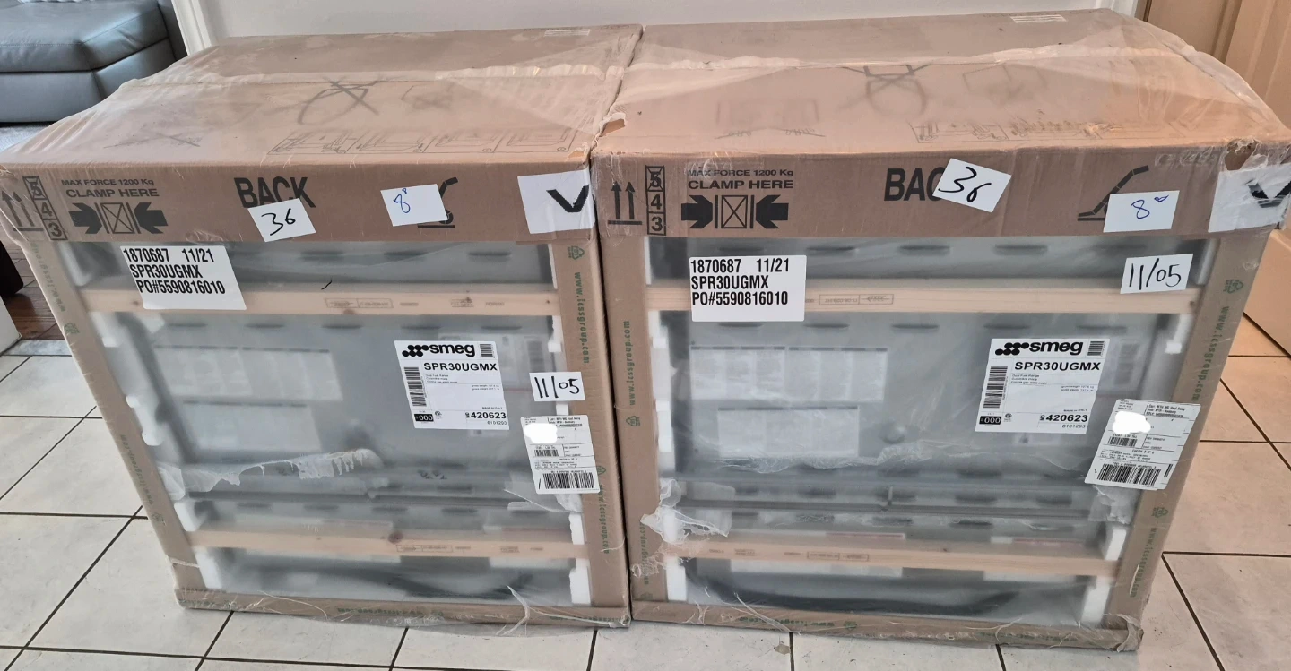 2 BRAND NEW SEALED IN BOX Smeg 30" Dual Fuel models available all with FULL WARRANTY. $1595 for the Smeg Portofino CPF30UGMX model (2nd set of images) & $2195 for the Professional SPR30UGMX (1st images). NO TAX, both retail for upwards of $4000 before tax. Smeg is high end brand made in Italy. Going fast, buy before they're gone.