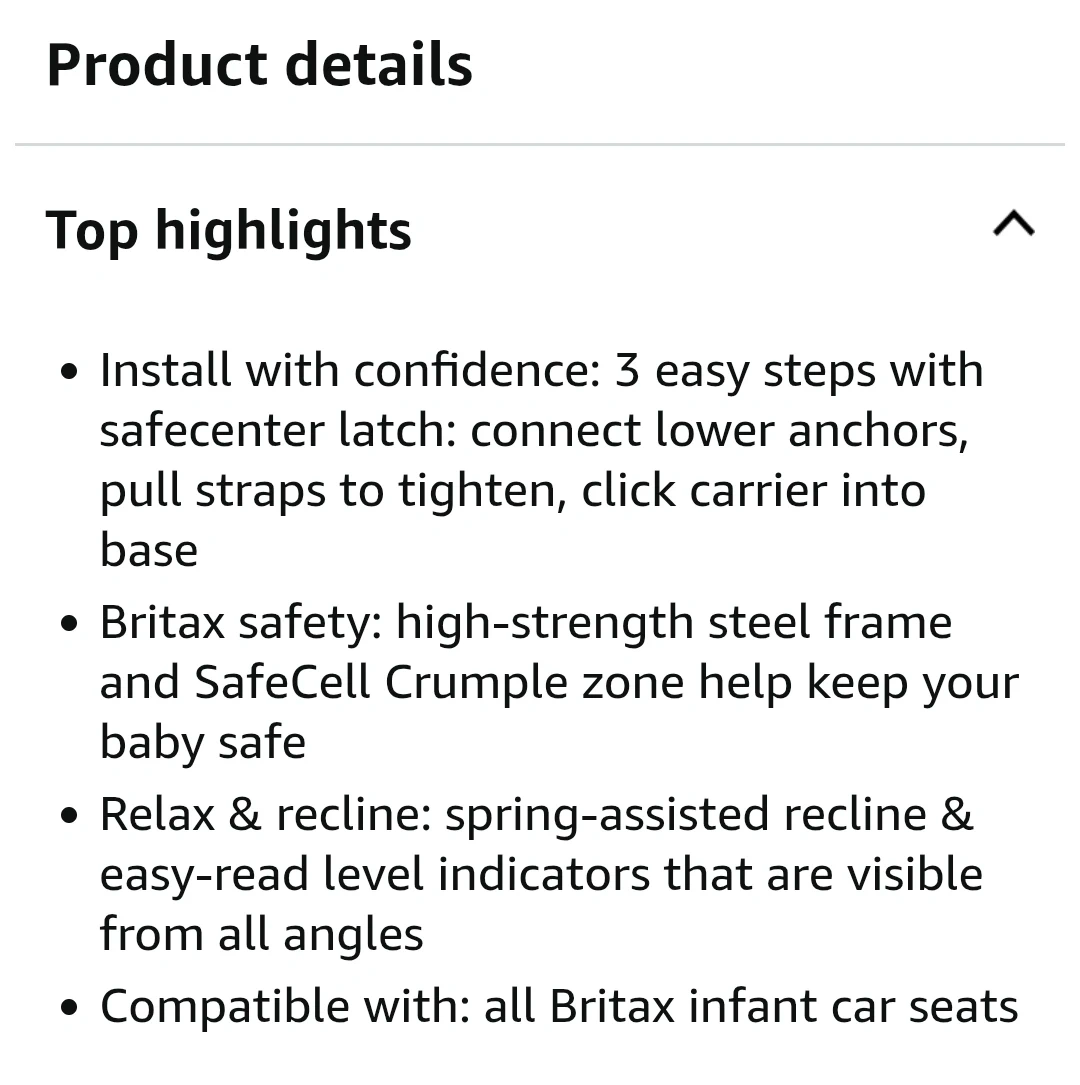 I'm selling a new Britax B-Safe 35 infant car seat base. It's compatible with all Britax infant car seats and features a high-strength steel frame and SafeCell Crumple zone. It also installs with confidence, using a 3-step SafeCenter Latch.