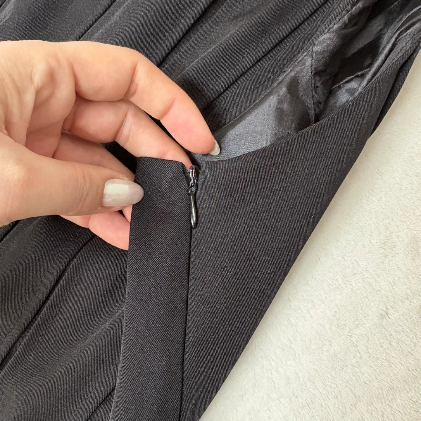 Elevate your wardrobe with this sophisticated Sandra Darren midi dress. This classic black piece features a flattering sleeveless silhouette and elegant vertical pleating that creates beautiful movement. Crafted with quality in mind, it is fully lined for comfort and a smooth fit, featuring a discreet invisible side zipper for a seamless look. Perfect for the office, cocktail parties, or any formal occasion.