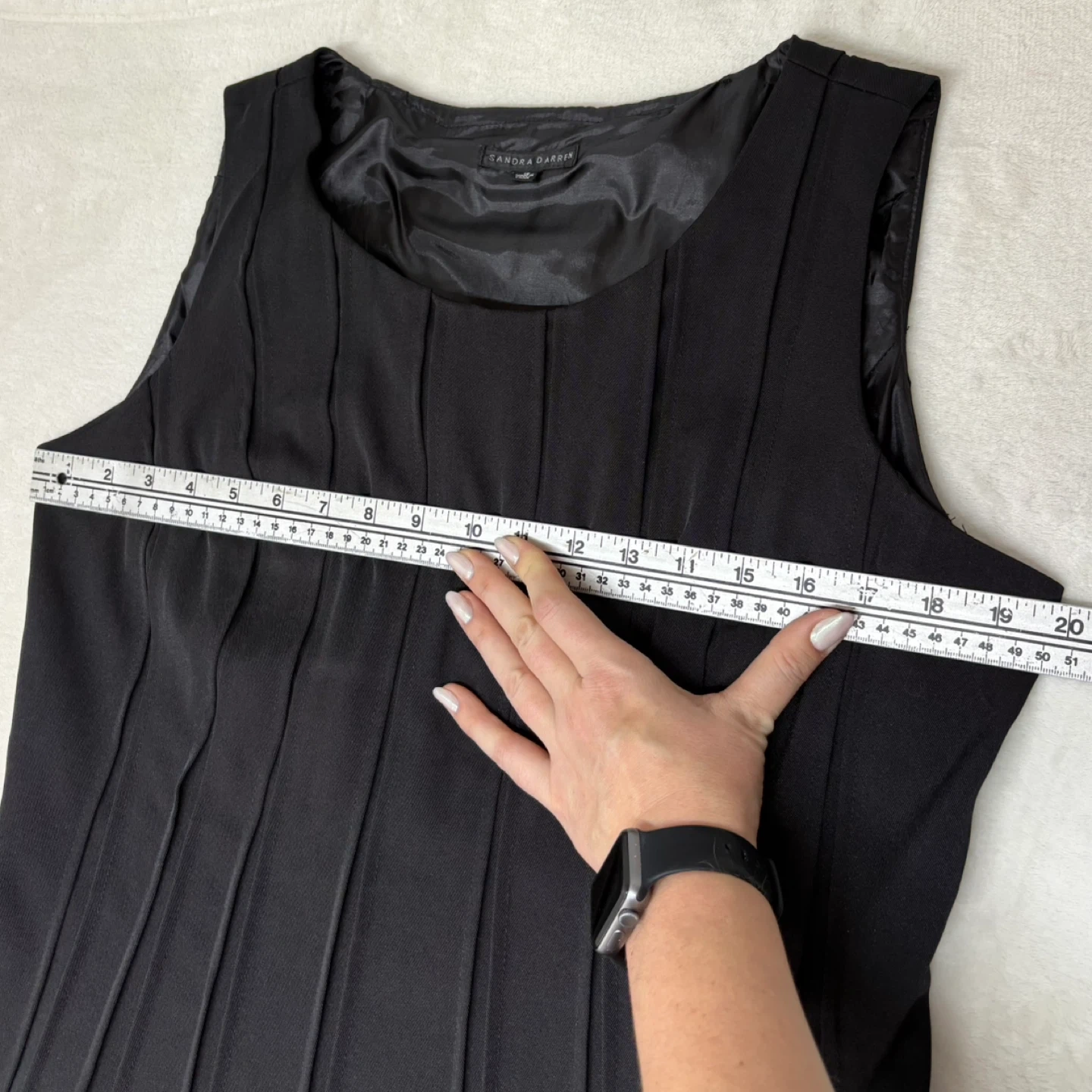 Sandra, Darren, dress, black, pleated, midi, sleeveless, size 16, formal, cocktail, office, career, lined, classic