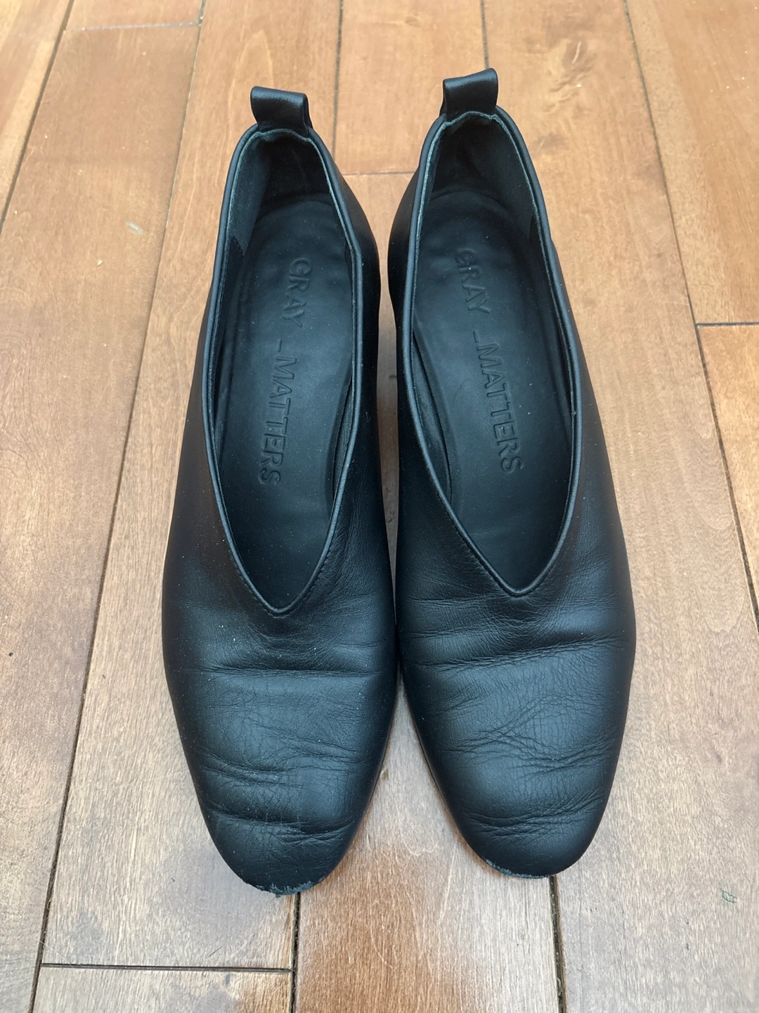 GRAY MATTERS Black Leather V-Cut Block Heels - Size 37.5