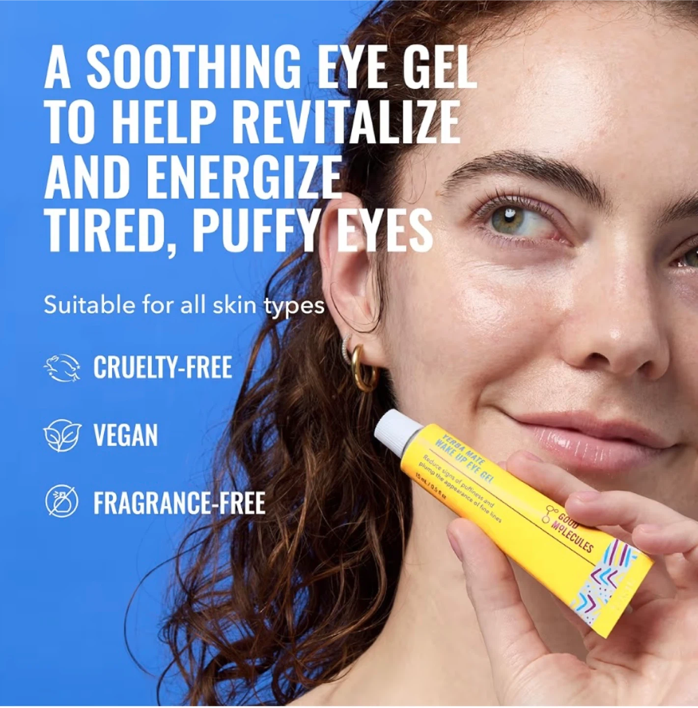 This eye gel is designed to help revitalize and energize tired, puffy eyes. It helps reduce the appearance of puffiness and fine lines. It's cruelty-free, vegan, and fragrance-free.