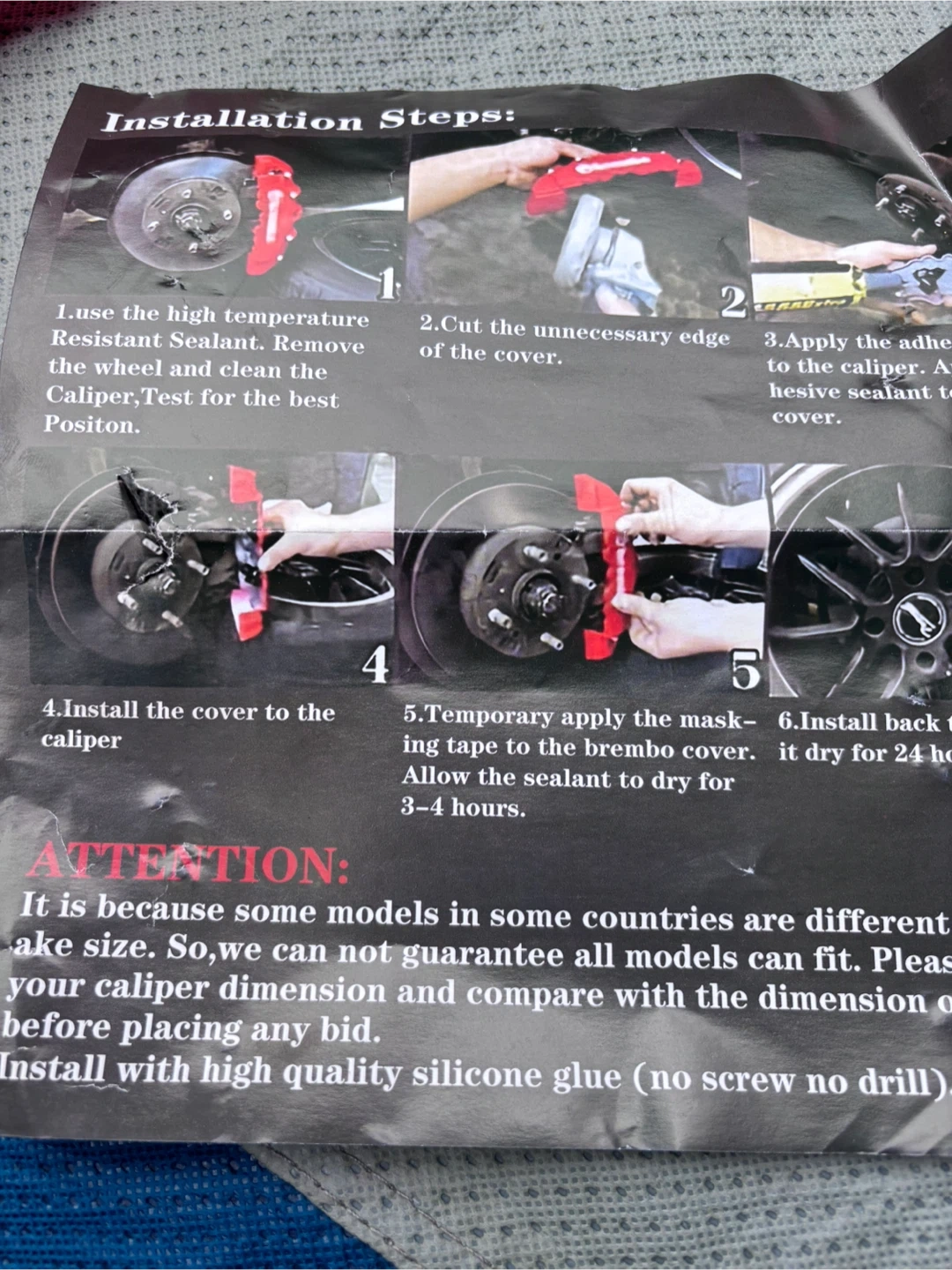 Set of four red Brembo brake caliper covers. Includes installation instructions. Made from durable material. These covers are designed to fit over your existing brake calipers.