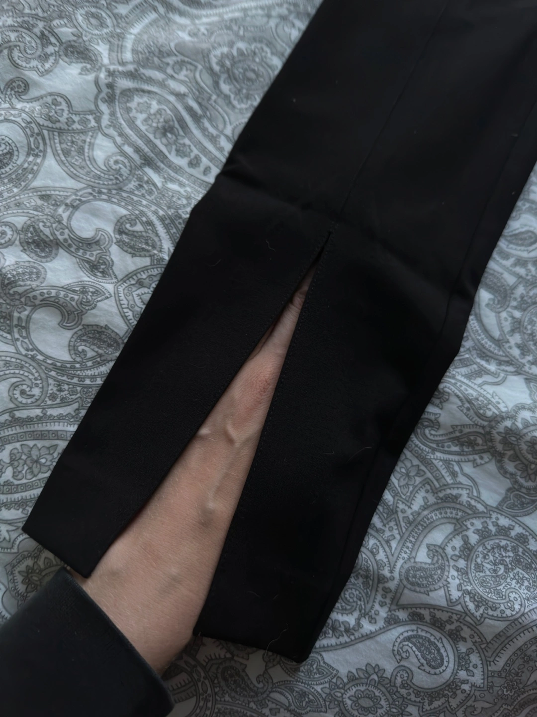Selling a pair of Calvin Klein black pants in size small. They're in great condition and feature a stylish slit detail at the bottom. Perfect for dressing up or down!