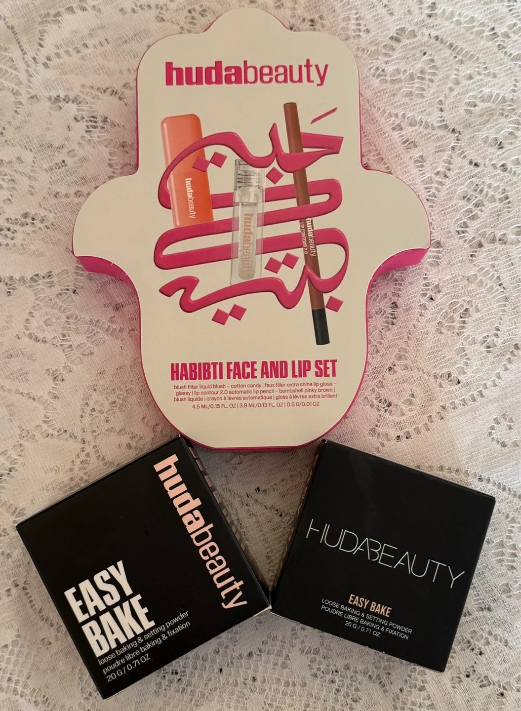 Huda Beauty $40.00 Eachโ Easy Bake Powders + Lip Set ๐