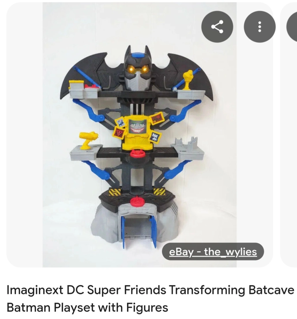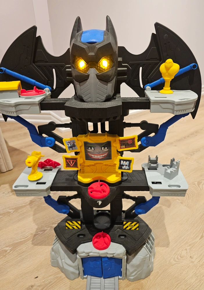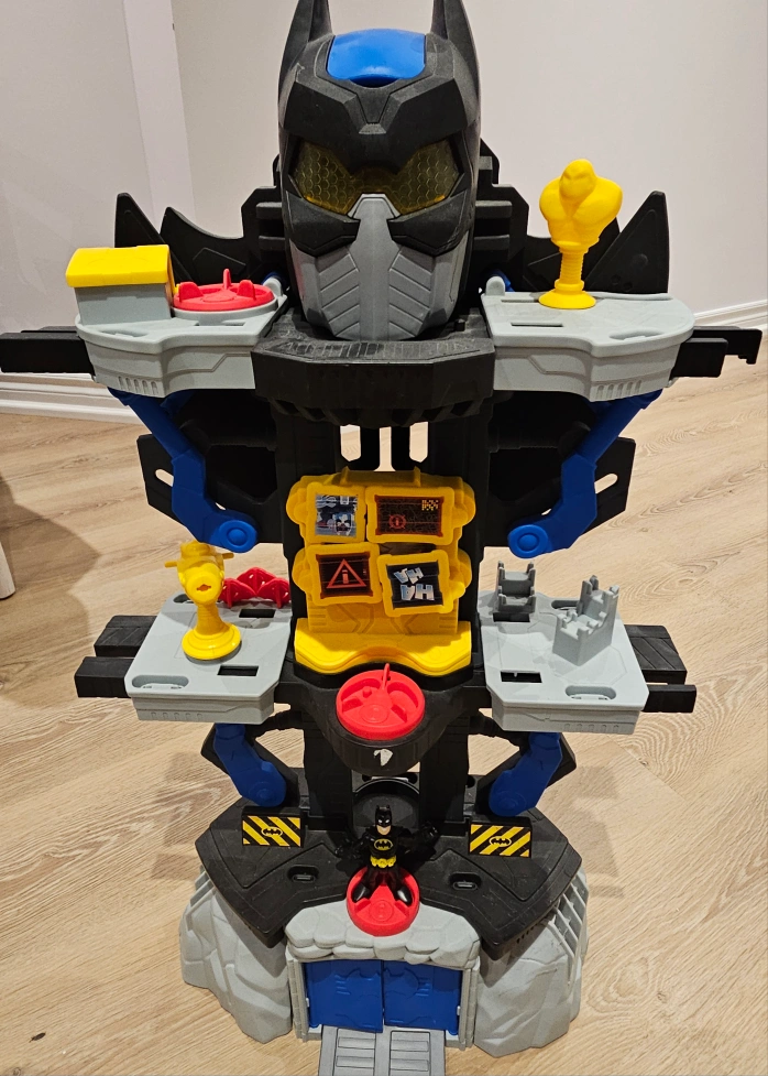 Playset with many levels and accessories. The design is Batman themed. Some areas appear to be interactive and light up. This will provide hours of imaginative play for your little ones.