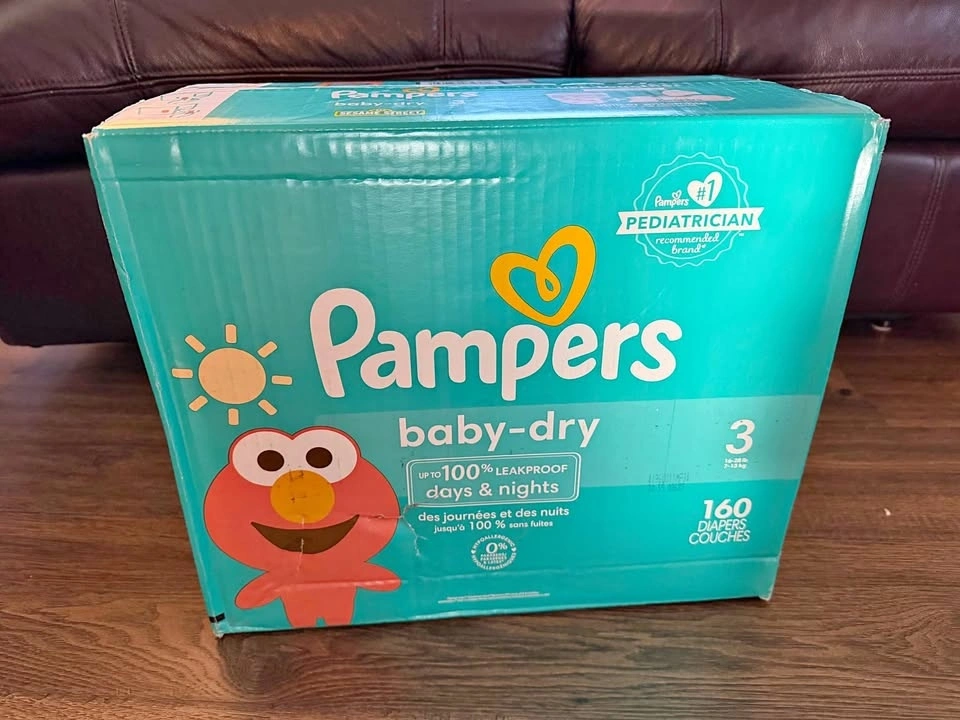 Leakproof Pampers Baby-Dry diapers size 3. Has 160 diapers. Up to 100% leakproof for days and nights. Hypoallergenic with 0% parabens, latex, and fragrance. Regular price $39.99, asking $25. Box is unopened but a bit dented. Pickup in Callaghan SW.