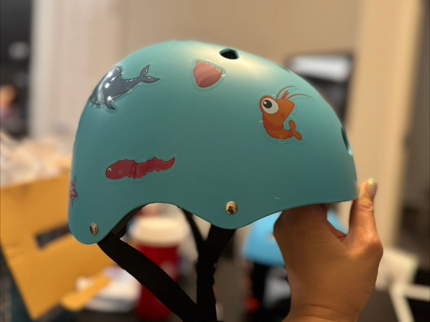 2 kids helmet. Blue Paw Patrol helmet. Features adjustable straps and removable pads. Includes extra sticker sheets featuring alphabet, ocean animals. Great for cycling, scootering, or skateboarding.