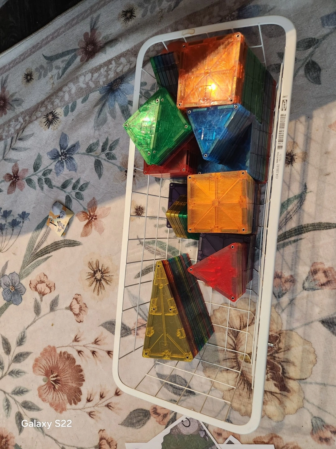 125 pieces - A set of magnetic building tiles in various translucent colors like red, blue, green, and orange. These connect easily to create 3D structures. It's a fun way for kids to explore shapes and engineering principles!