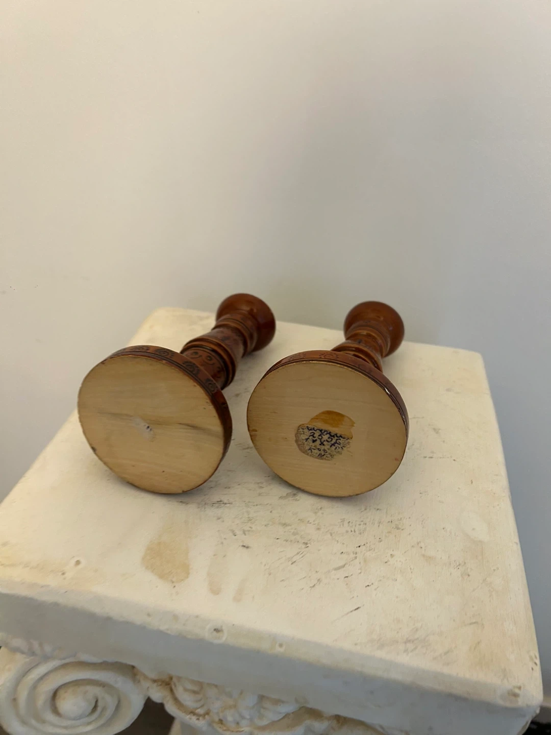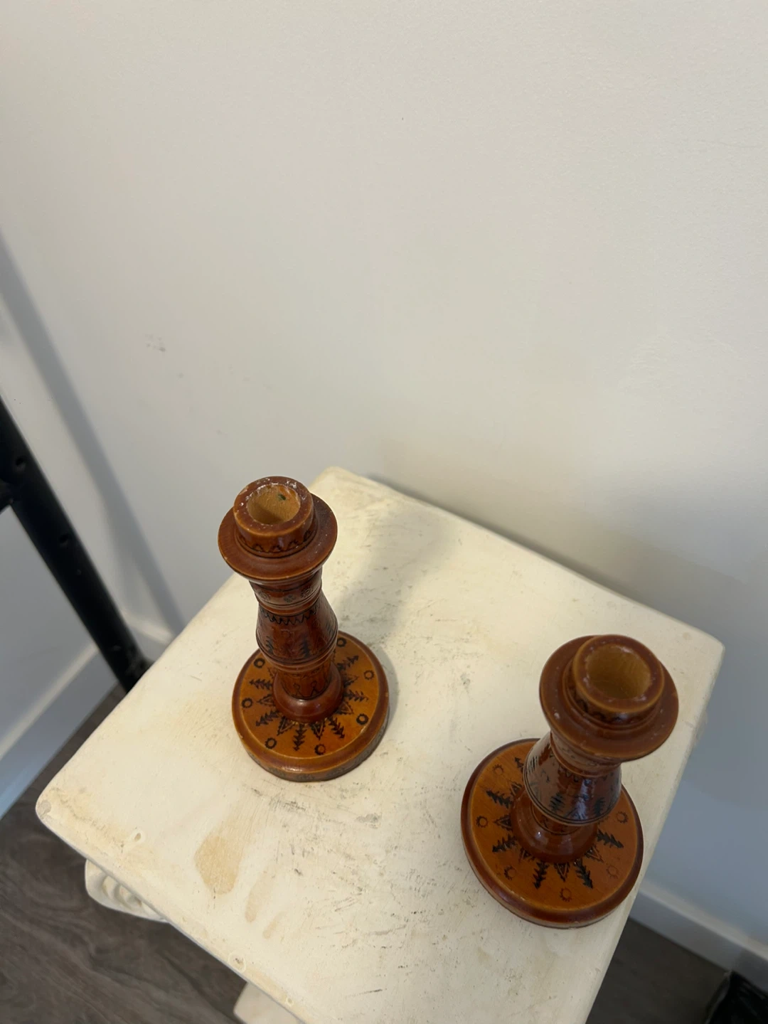 Set of 2 Wooden Candlesticks with Folk Art Design
