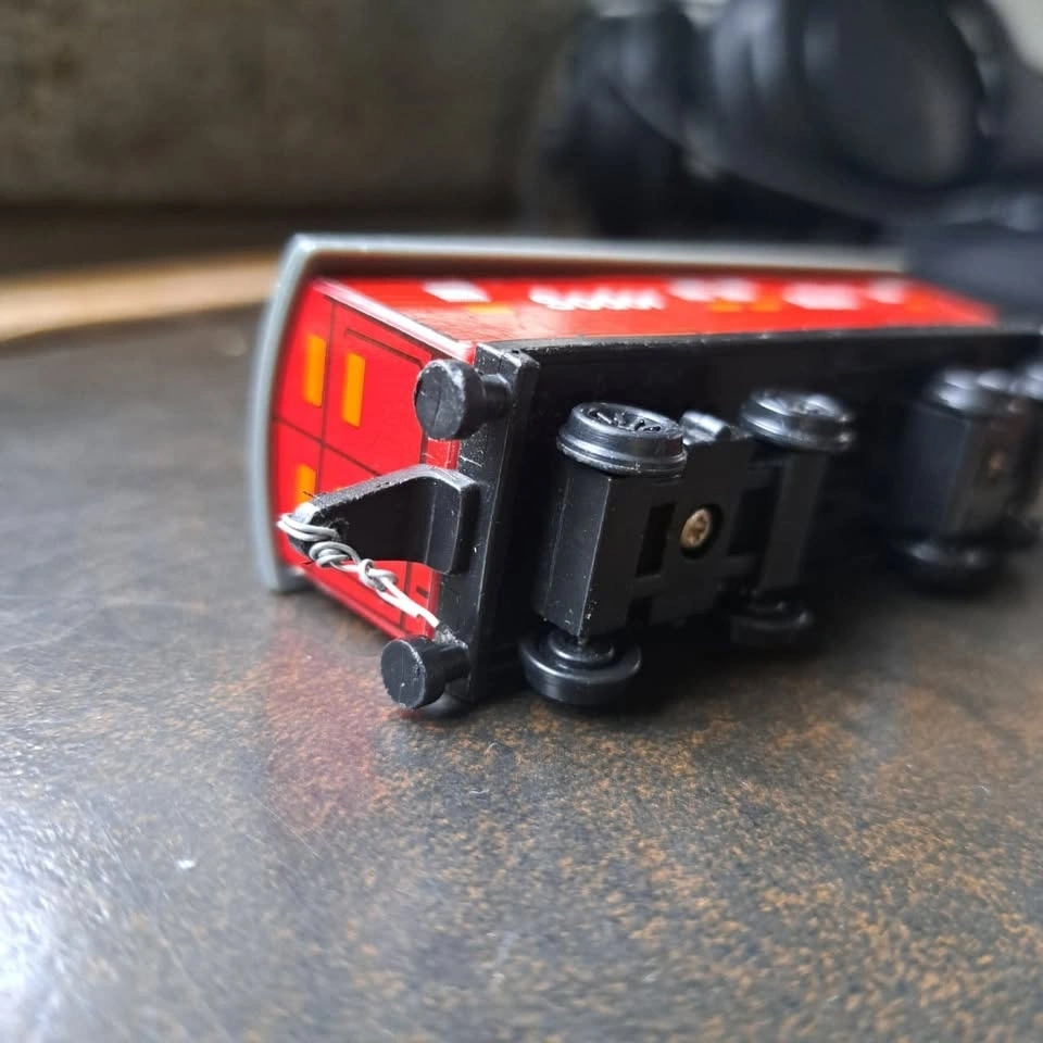 - Pin coupling broke, fixed with metal wire, can still connect with other trains with the metal wire (see pictures)