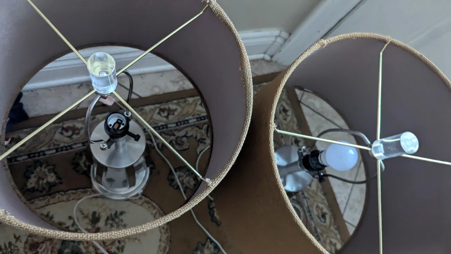 Set of 2 Metal Table Lamps with Tan Fabric Shades