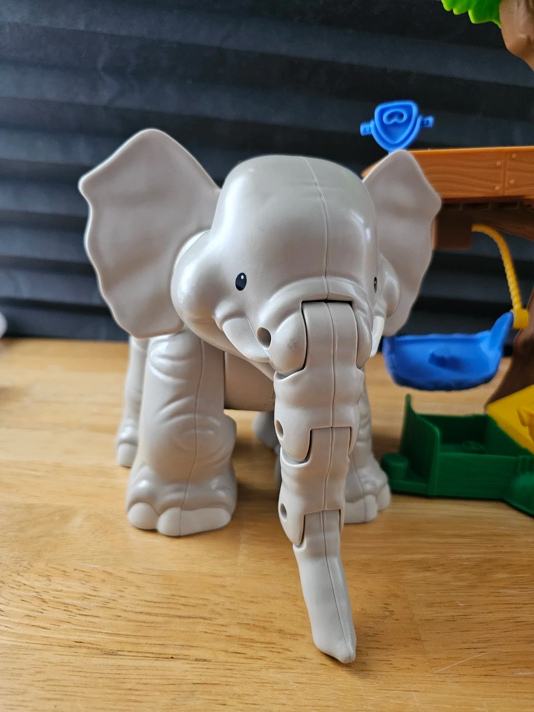 This Little People playset features an elephant, monkey, and two figures, along with a treehouse and interactive elements. It's designed for imaginative play and encourages interaction with animal and people characters. Great for developing fine motor skills and storytelling abilities!
