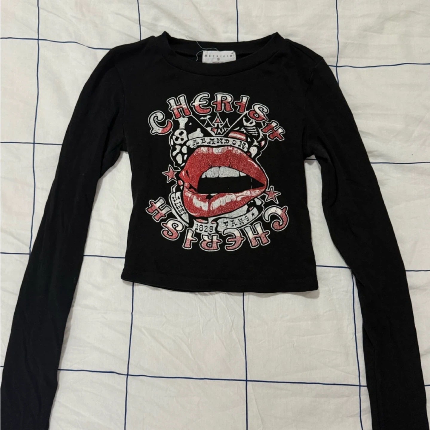 This is a black long sleeve t-shirt from MEYSIKIM. It's made of 95% cotton and 5% spandex. Amazing condition and it’s super comfy and stilysh.