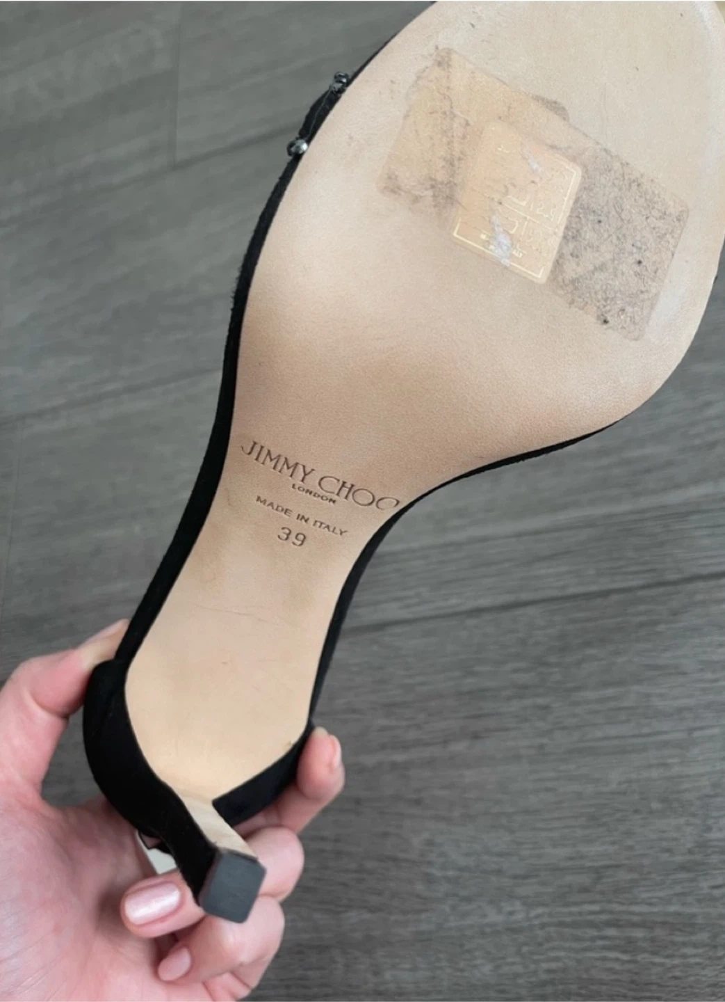 Jimmy Choo Dochas heels in black suede with crystal trim. Made in Italy. Size 39.