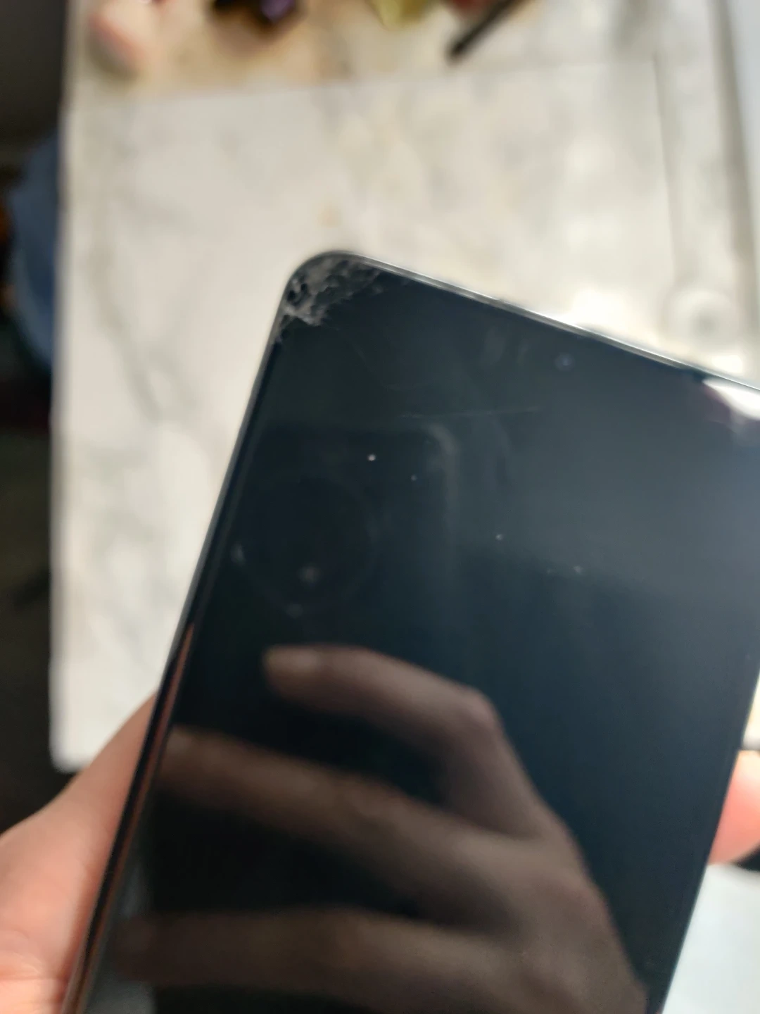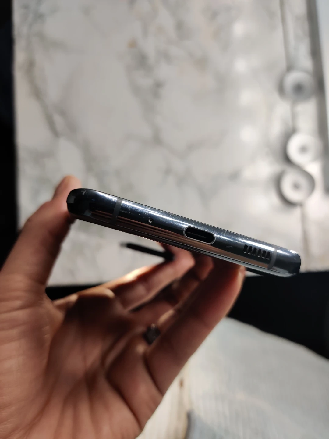 Small ding in the corner. Otherwise phone works great , great battery life no scratches 100x camera zoom , 6.7 inch screen ! Unlocked, clean IMEI , no issues